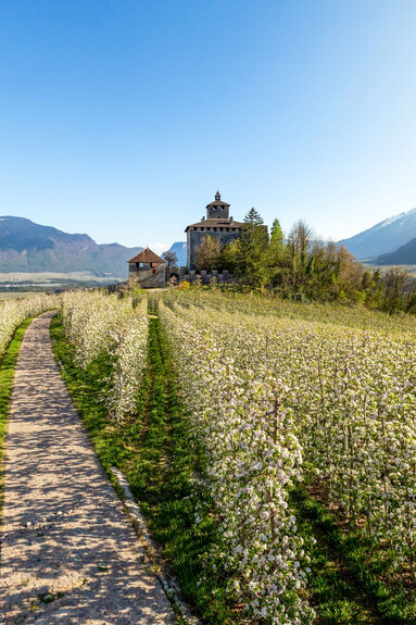 Il castello è da visitare soprattutto in primavera e in autunno, perché è costruito su un bel pianoro soleggiato e panoramico, immerso nelle campagne punteggiate da alberi di melo, in primavera carichi di bianchi fiori profumati, d’autunno carichi di mele fragranti e dorate.
