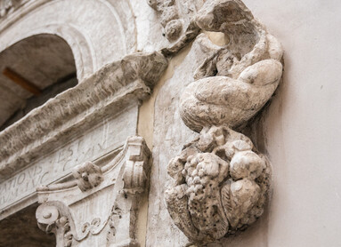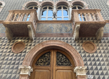 Superato senza troppa fretta questo scorcio, raggiungi l’angolo opposto della piazzetta. Rivolgi lo sguardo alla sinistra, verso la lunghezza di Via Oss Mazzurana e incamminiamoci! Dopo pochi passi, sul lato destro di Via Mazzurana puoi ammirare la facciata a bugnato di Palazzo Tabarelli, che ricorda le architetture ferraresi e bolognesi. Poco più avanti, sempre sullo stesso lato e proprio sull’angolo con via Diaz, vale la pena una sosta per ammirare gli affreschi accurati di Palazzo Cazuffi (da non confondere con l’omonima Casa, più iconica, che sorge in Piazza del Duomo), affilando un po’ lo sguardo per raggiungere la parte alta dell'edificio.