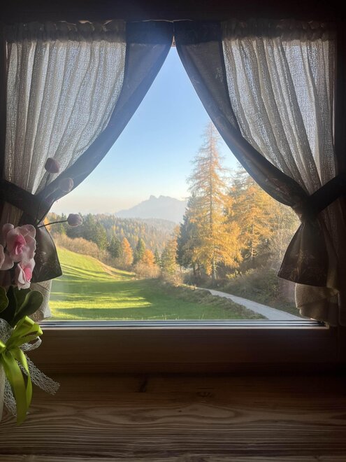 L'autunno trasforma il paesaggio attorno alla baita in un quadro dai toni caldi e avvolgenti...