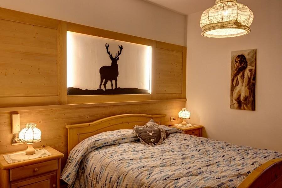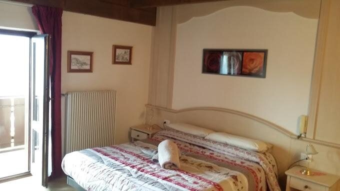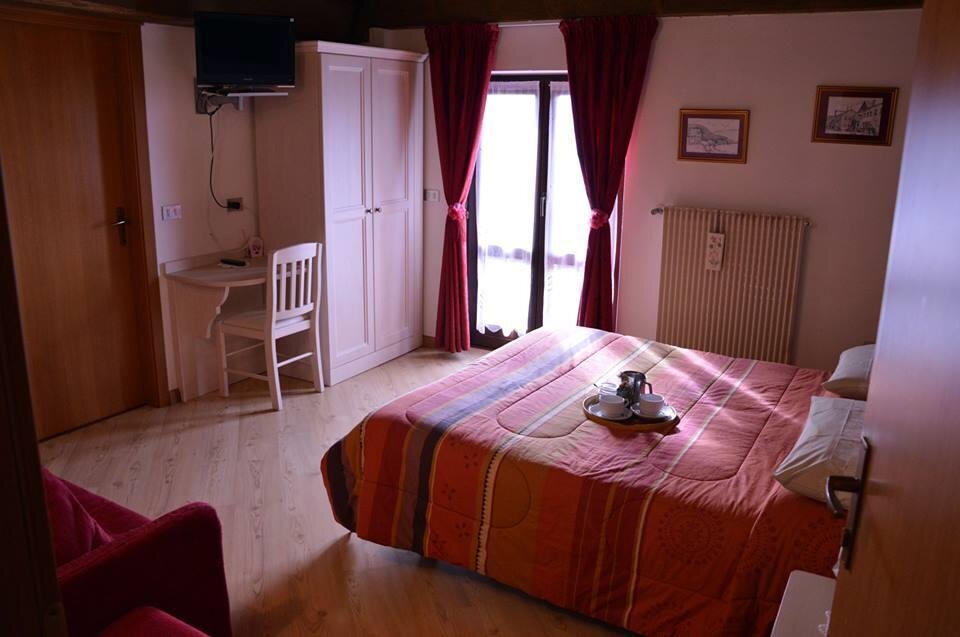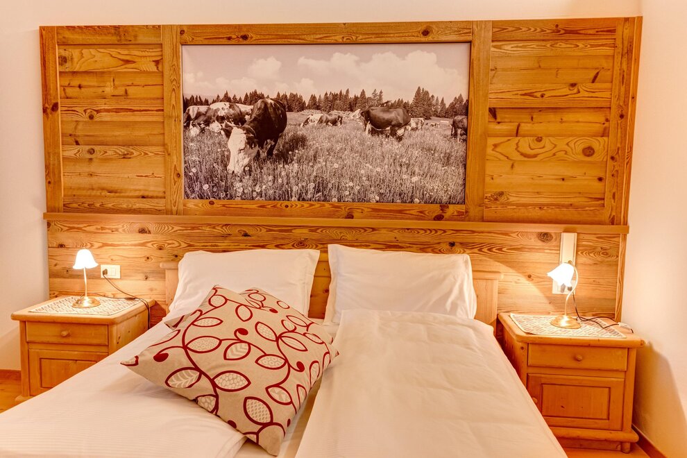 Camera doppia spaziosa e confortevole, arredata in legno di larice, con vista a valle oppure verso la montagna e sui sentieri tematici. Dotata di bagno privato, tv, balcone, riscaldamento autonomo, accessibile ai disabili con sedia a rotelle.