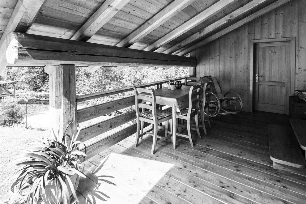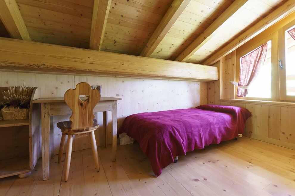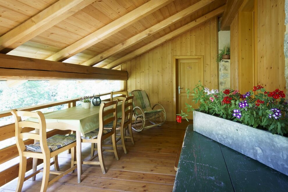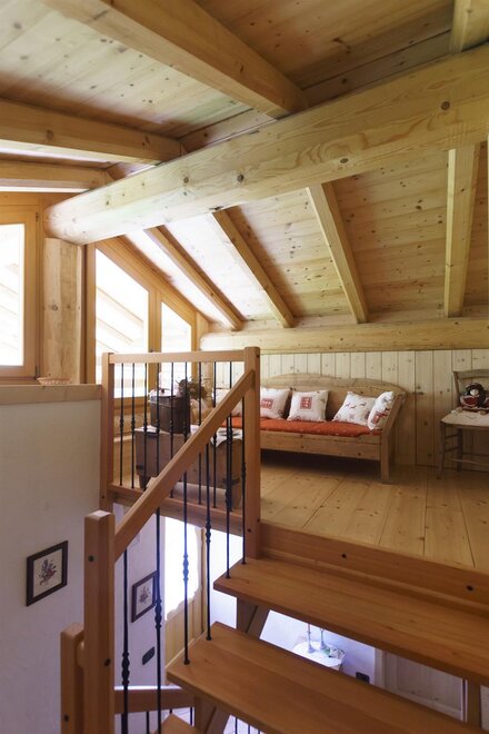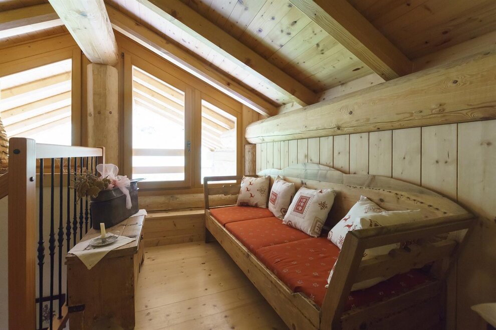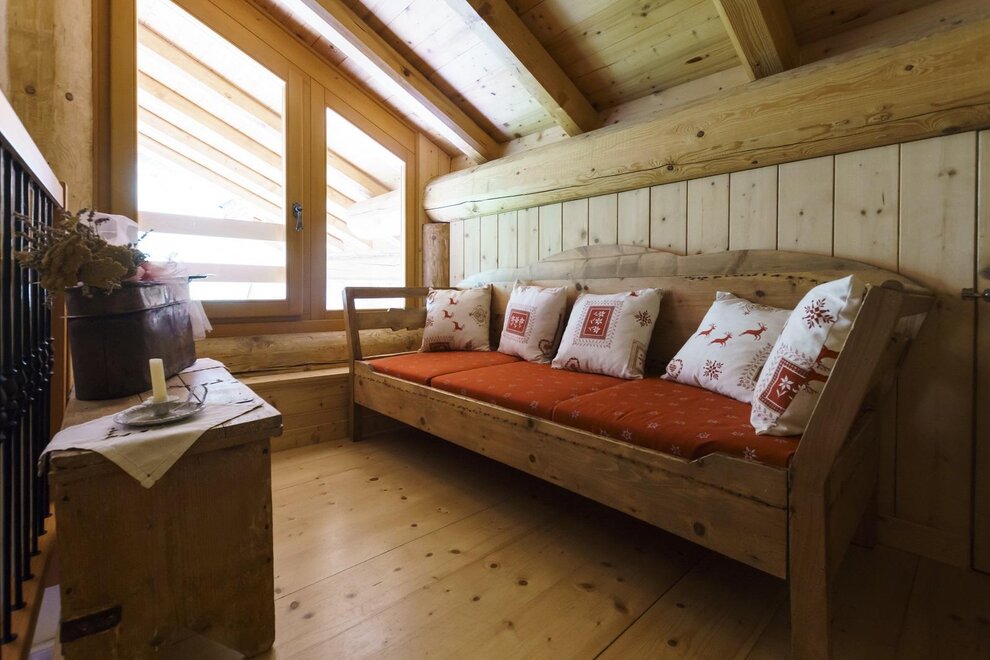 L'ampio salone, riscaldato da una grande stufa ad ole, è l'ideale per rilassarsi e trascorrere una tranquilla serata in compagnia davanti al fuoco. Il soffitto il legno e l'arredamento conferiscono all'ambiente calore e pace.