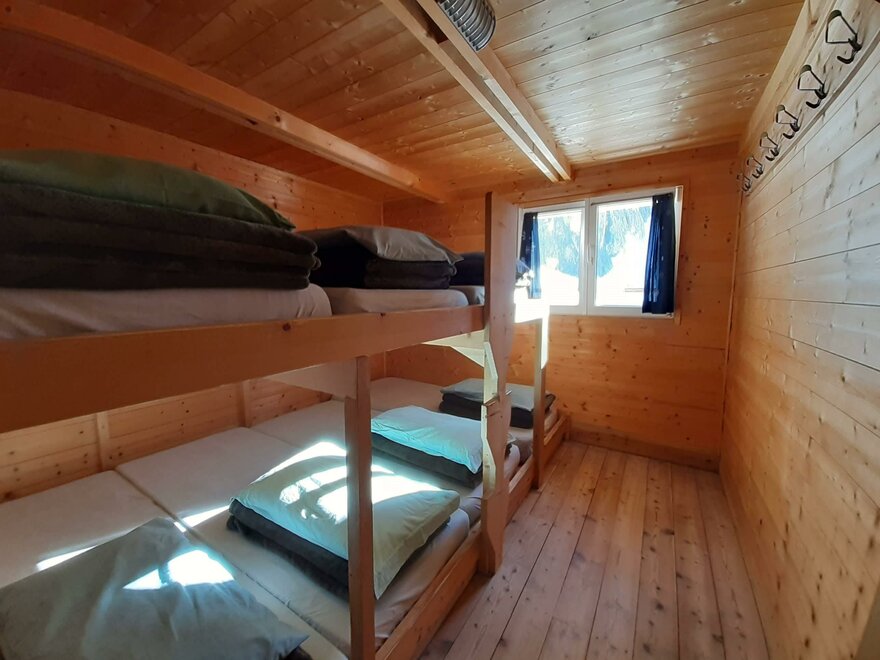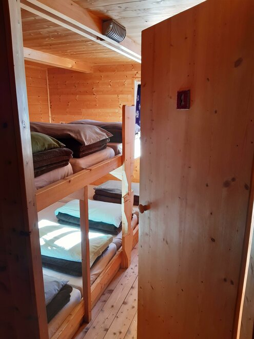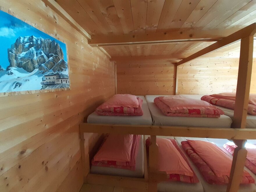 Camerata per 8-10 persone con letti a castello. Ogni letto è dotato di materasso, cuscino e coperte.