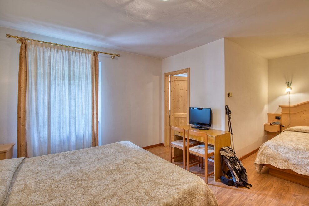 Con i suoi piccoli tesori da scoprire, la cucina casalinga e un’accoglienza spontanea, l’Albergo Moleta interpreta fino in fondo la più autentica ospitalità Trentino e della gestione famigliare.Aperto storicamente proprio da un arrotino, a cui deve il nome, l’Albergo Moleta dal 1980 è di proprietà della famiglia di Aldina e Lino Collini che continua tutt’oggi ad ospitare le vacanze di chi apprezza la semplicità.La struttura dispone di 16 camere con bagno privato, telefono, televisore, e prevede quattro formule di soggiorno: solo pernottamento, B&B, mezza pensione oppure pensione completa. La posizione nel centro della Val Rendena sulla strada principale, e il parcheggio gratuito rendono l’Albergo Moleta una struttura comoda e funzionale per muoversi agevolmente verso gli impianti di sci di Pinzolo e di Madonna di Campiglio o verso i principali punti di accesso al trekking sulle Dolomiti di Brenta e del Gruppo Adamello – Presanella.