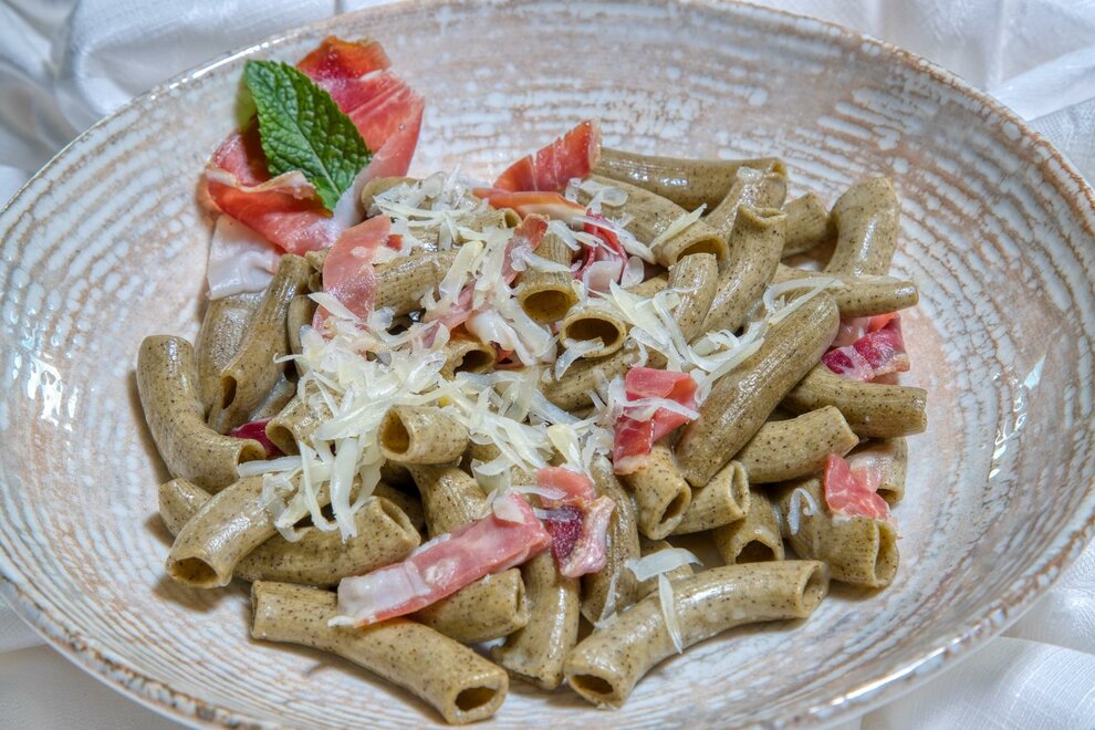 Il ristorante dell' Albergo inoltre, offre una cucina genuina e ricca di specialità tipiche. L' abbinamento cibo vino troverà il modo di accostarsi alle preparazioni scelte grazie alla produzione propria di vini curata dalla "Cantina di Riccardo".