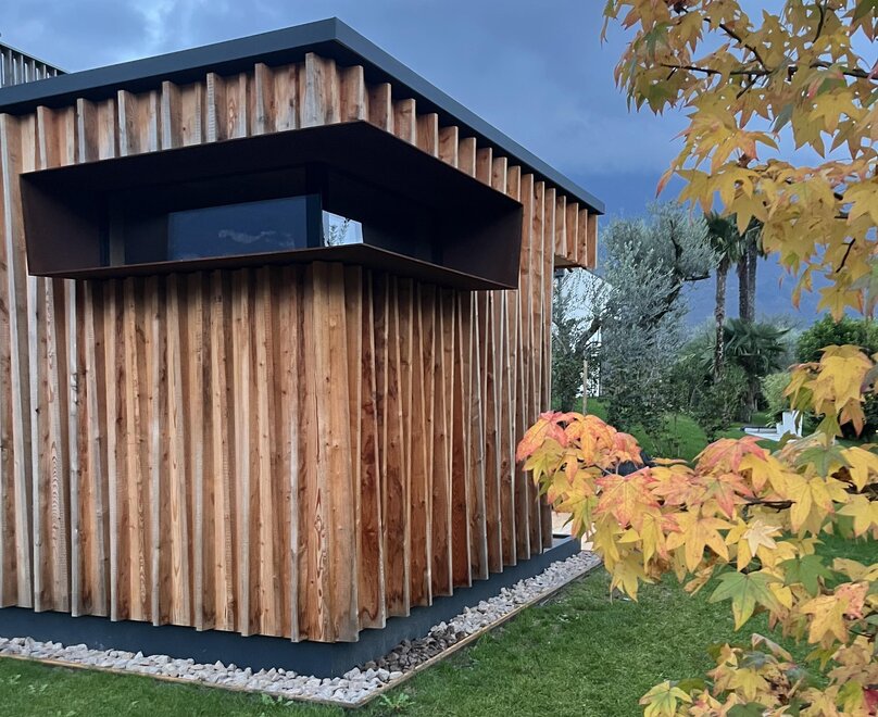 La luce che filtra dall'ampia terrazza lato sud valorizza i materiali ricercati che impreziosiscono l'ambiente. Il legno di rovere e il gres porcellanato rivastito di Kerlite si sposano alla perfezione in un connubio di naturalezza e design.