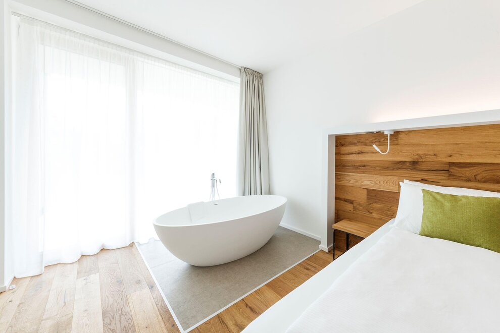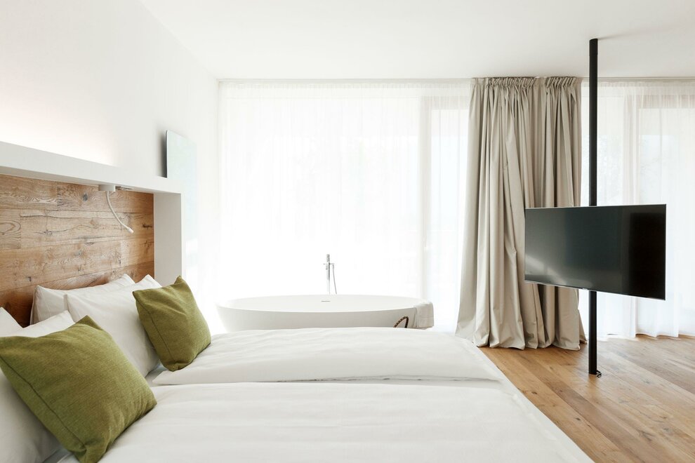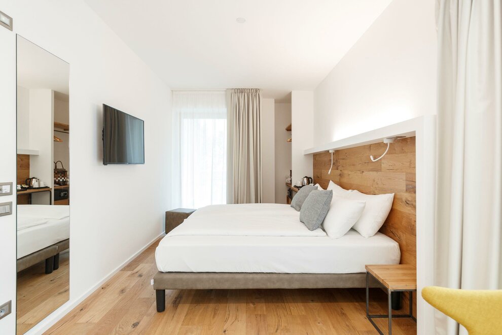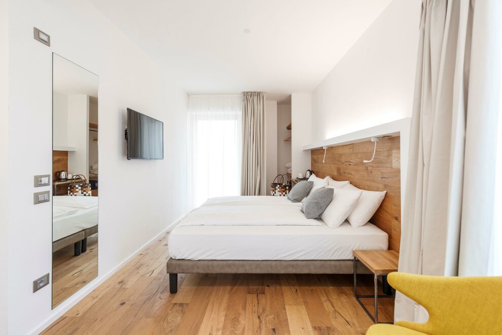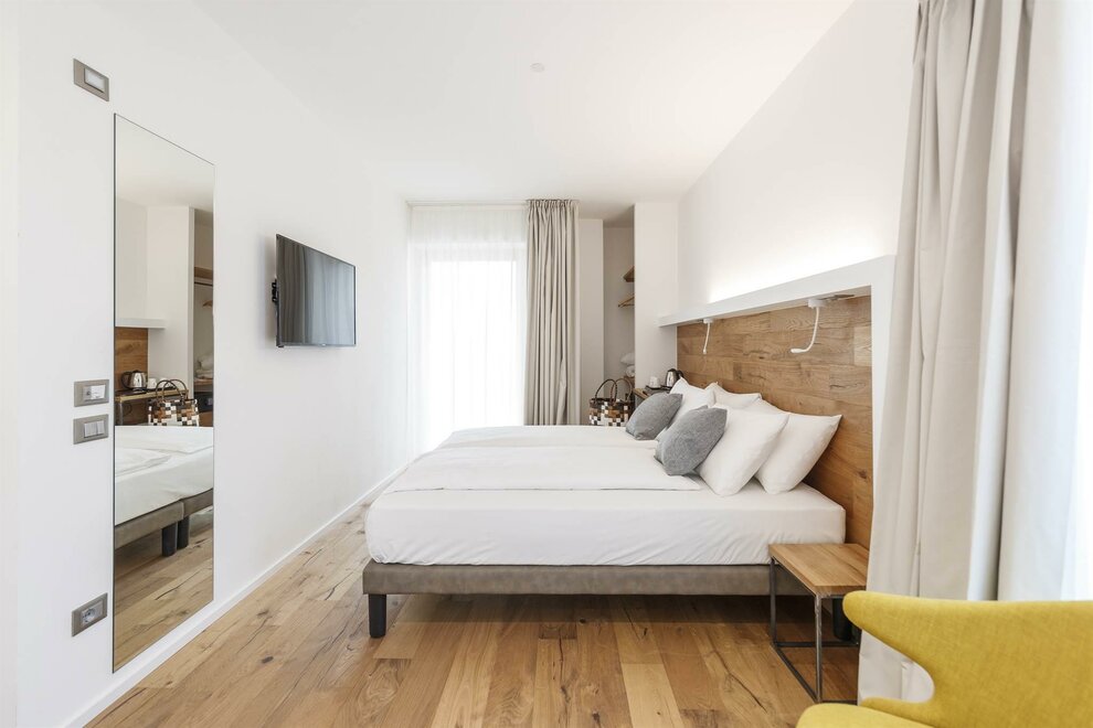 Eleganza, tinte morbide e linee semplici conferiscono una sensazione di puro benessere e rendono la Mini-Suite una stanza rilassante e accogliente dove poter trovare riposo. La terrazza o il giardino amplificano la percezione di sintonia con la natura.