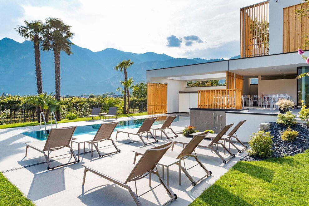ALEA - GARDA LAKE SUITE nel centro della campagna dell'Alto Garda, circondato da vigneti e meleti. Una struttura moderna, lontano dal traffico ma comoda ad ogni tipo di servizio. Poco distante dal centro di Arco (1km) e dal lago di Garda (5 km) è il punto di partenza ideale per escursioni, in bici e a piedi, arrampicate o semplicemente per godere della quiete del luogo.