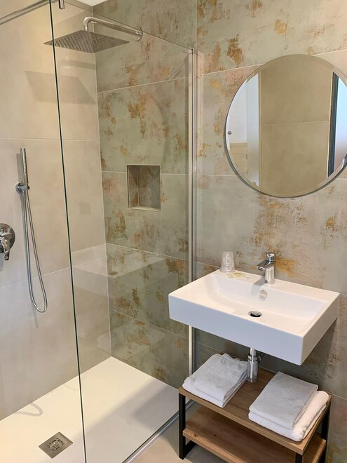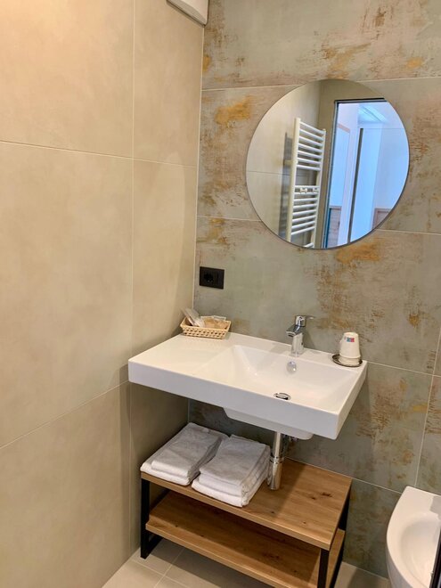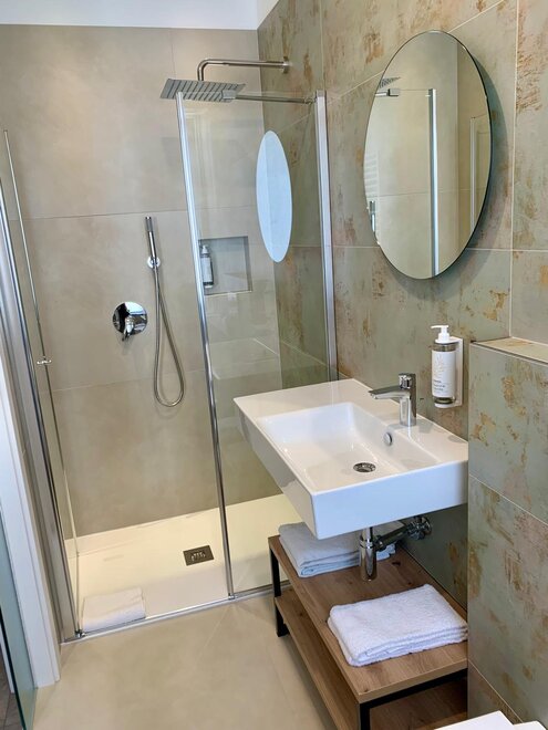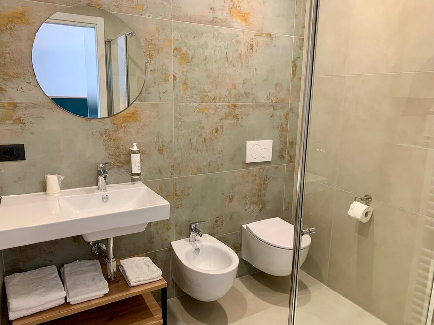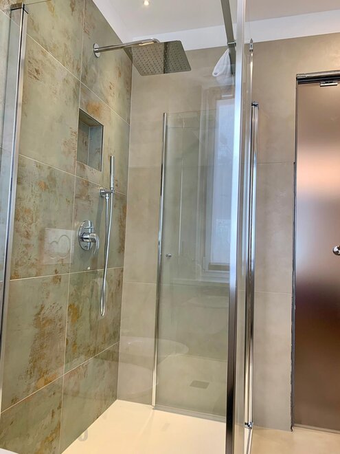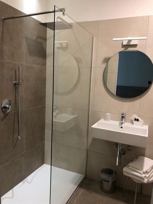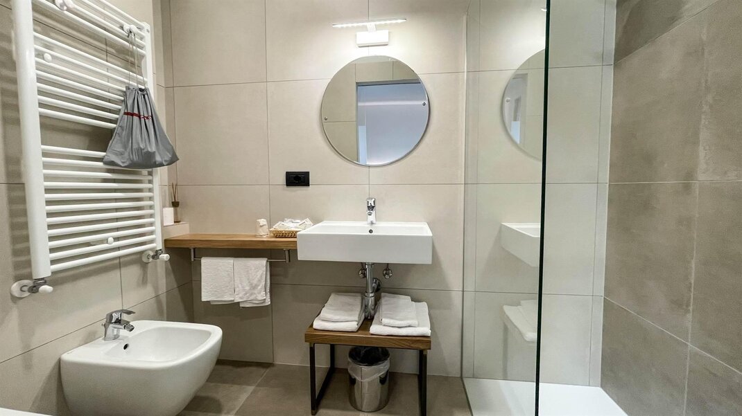 Stanza insonorizzata e confortevole. Bagno con ampia doccia.