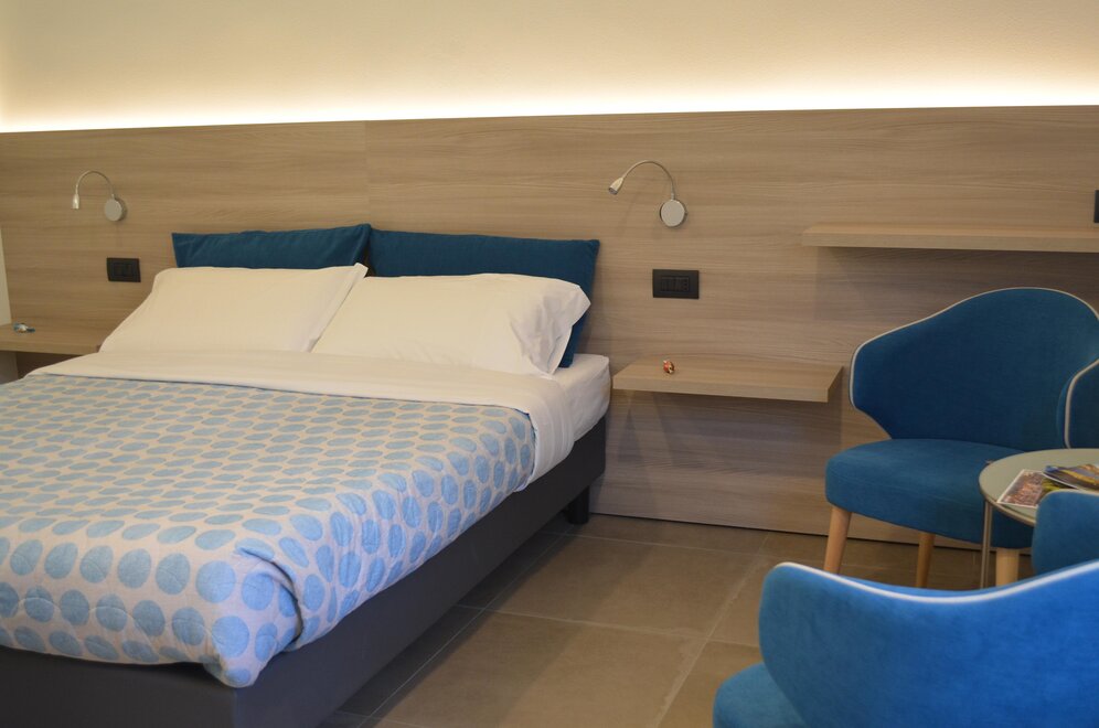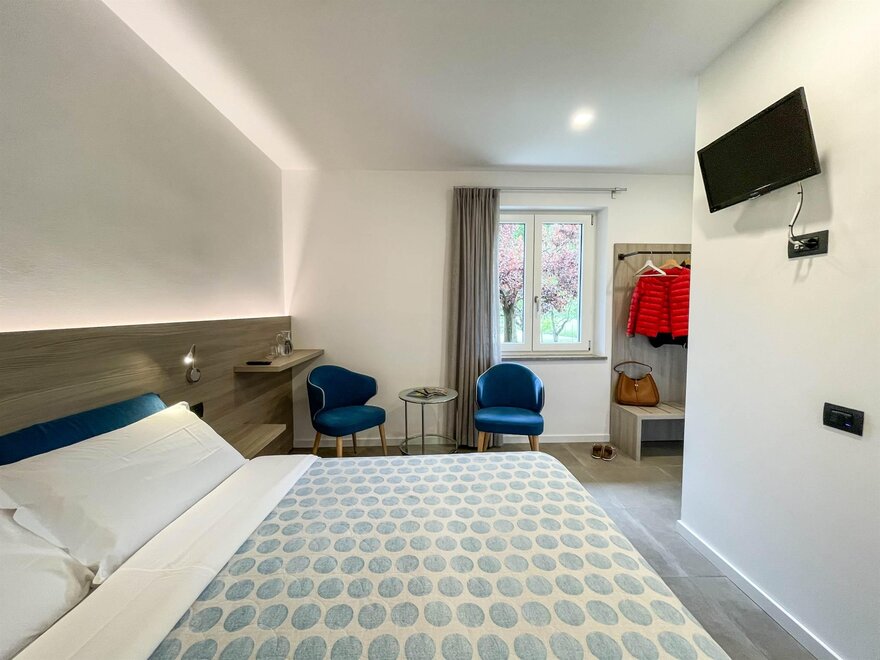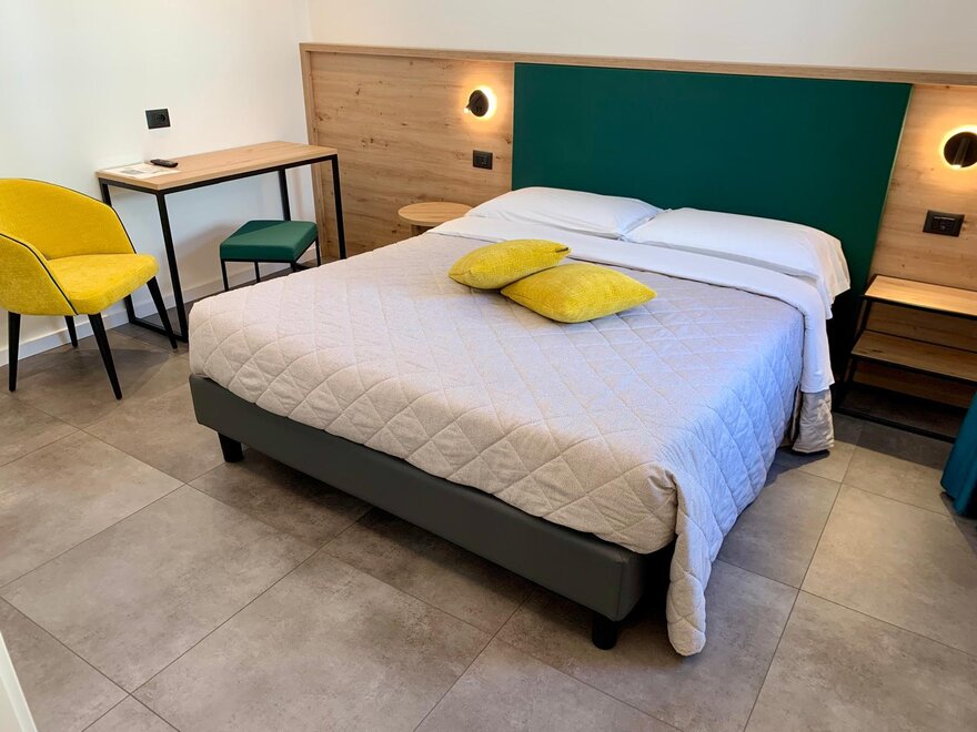 Camere completamente rinnovate, semplici e confortevoli con letto alla francese, bagno privato, linea cortesia, asciugacapelli, tv, WI-FI gratuito in tutte le camere.