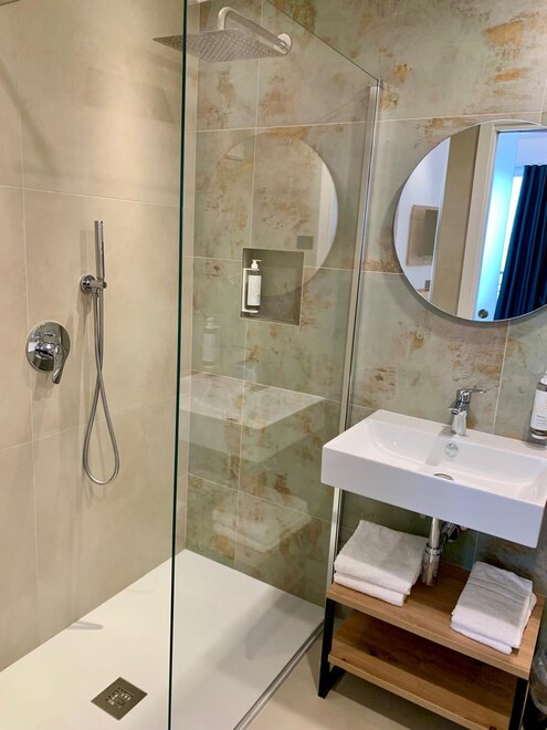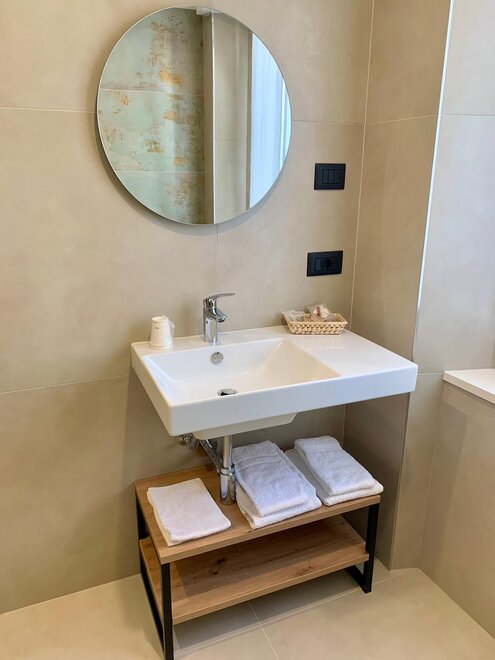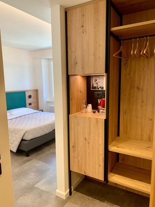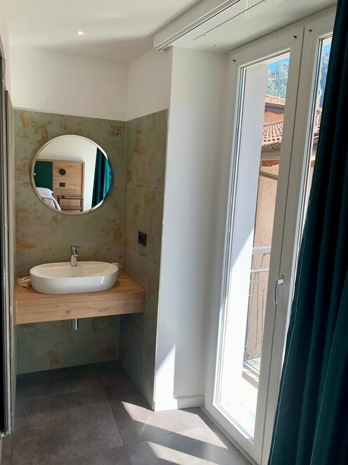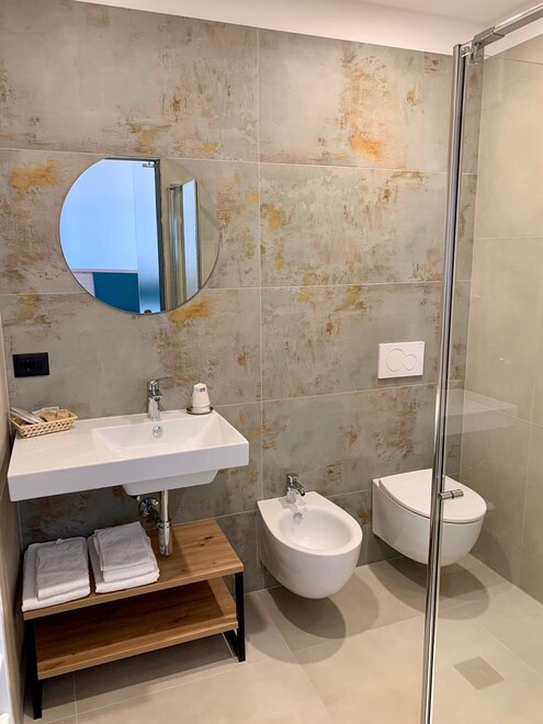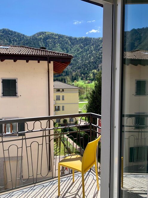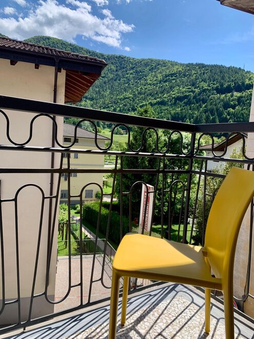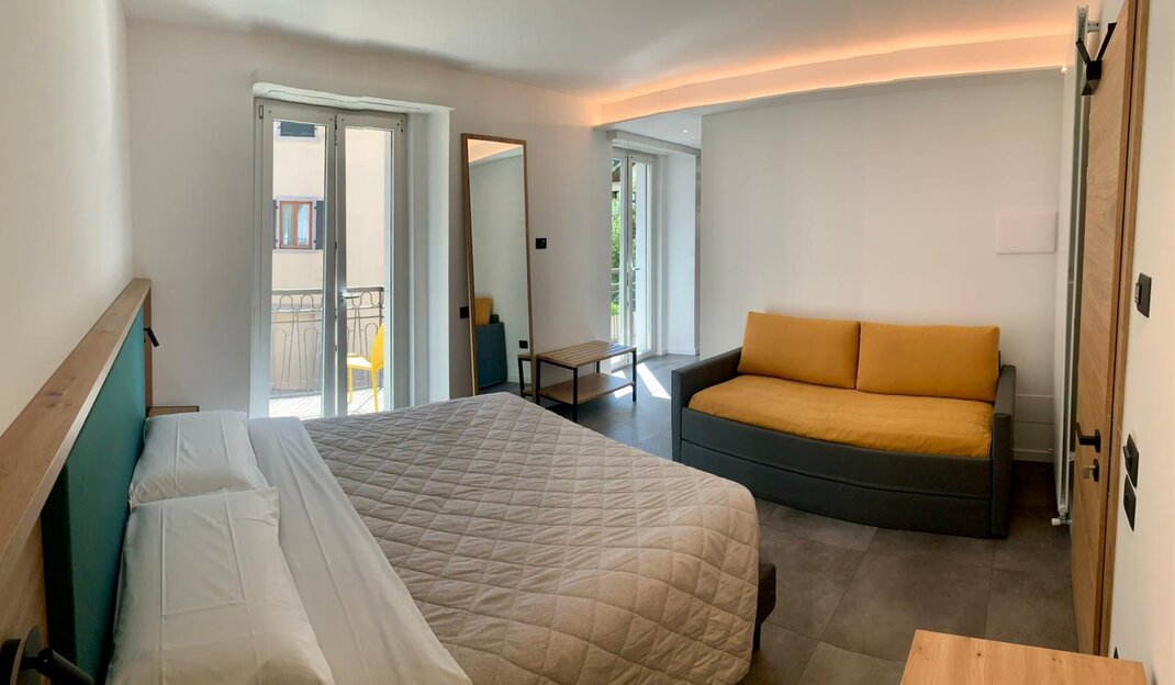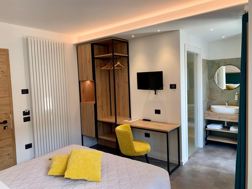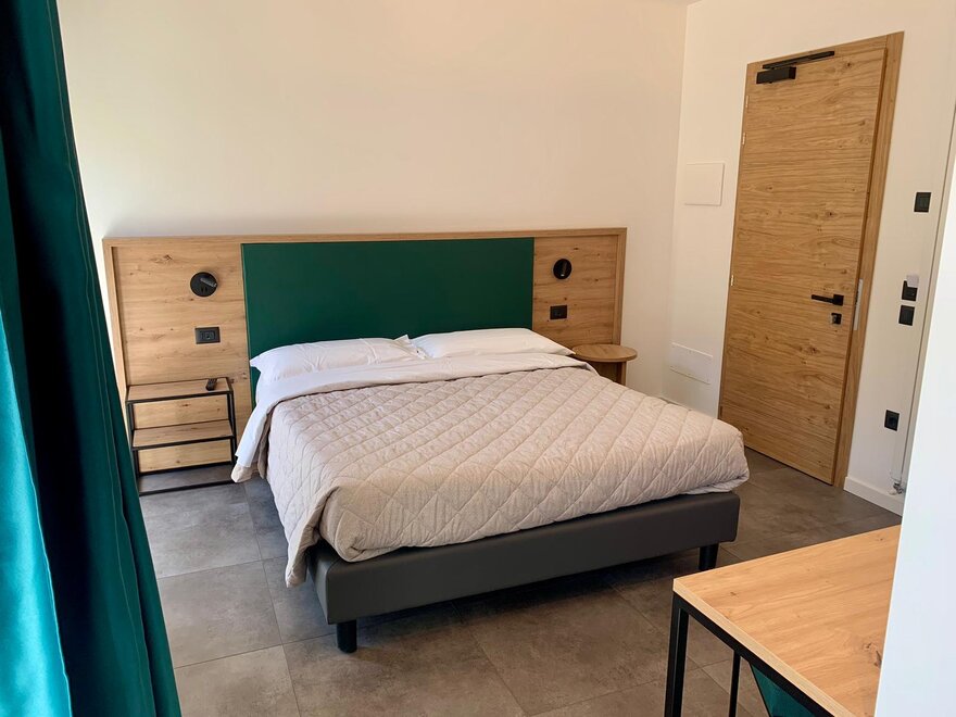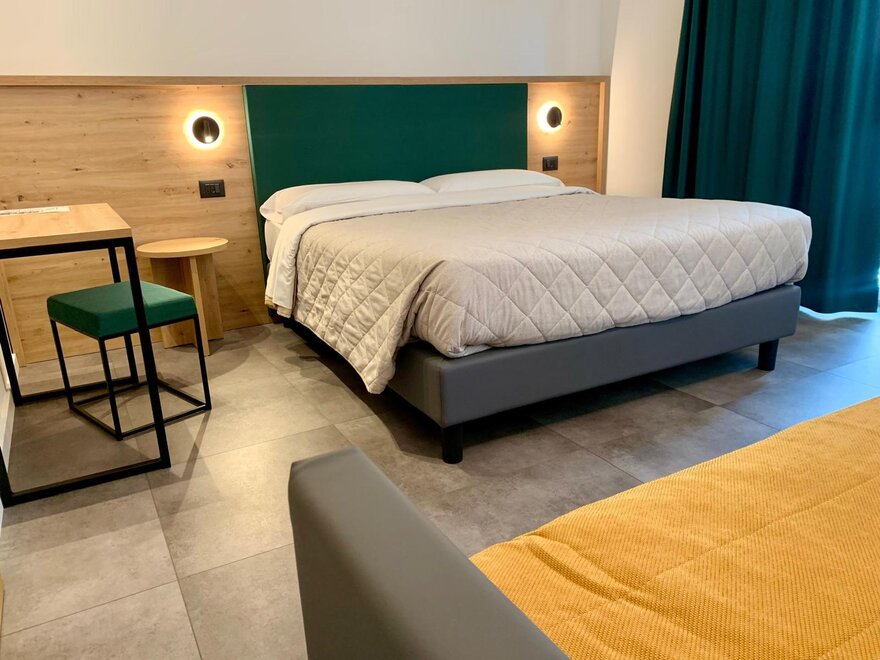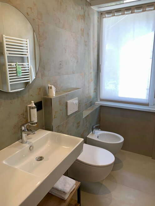 Camera doppia con balcone completamente rinnovata, insonorizzata e confortevole con bagno privato e ampia doccia, linea cortesia, asciugacapelli, tv, WI-FI gratuito in tutte le camere.