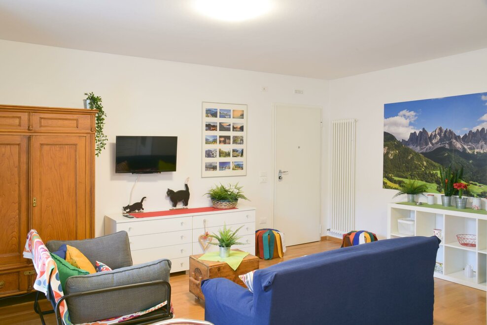 Trilocale di 85 mq ideale per coppie, gruppi di amici e famiglie, situato al primo piano, con doppio balcone.