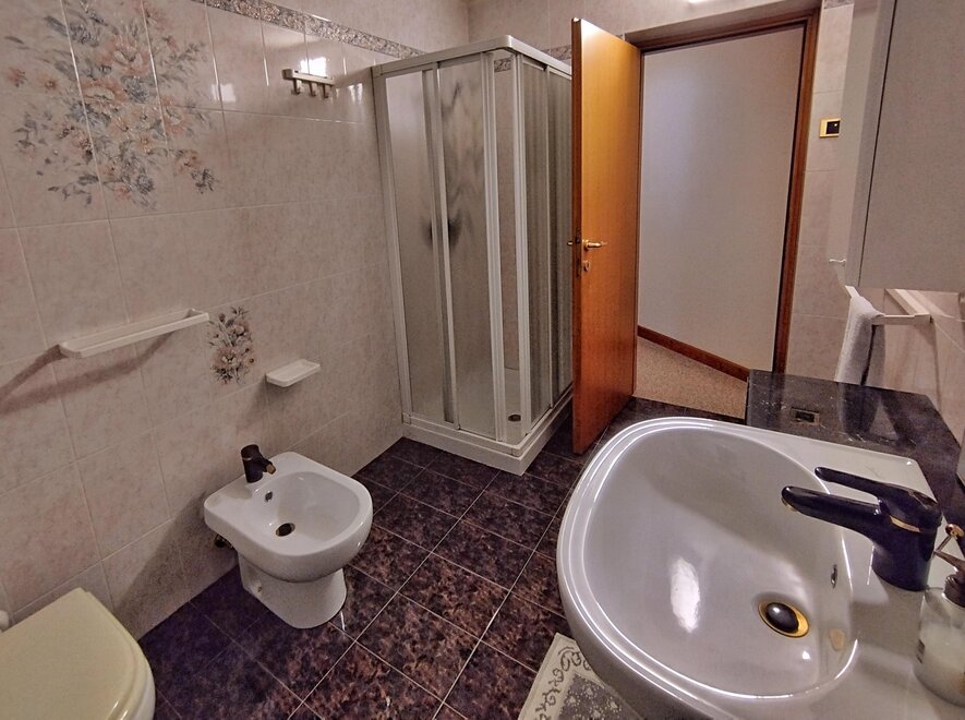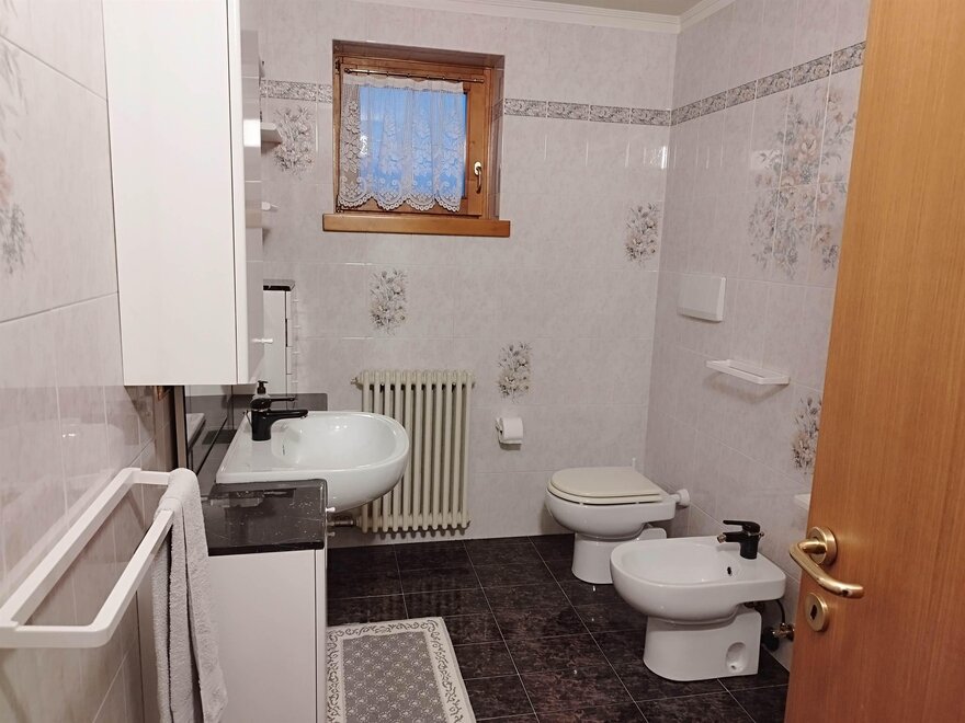 Fa parte di un ampia villa in posizione panoramica sopra al centro di Caderzone terme, con centro terme borgo salute, SPA e centro benessere a 200 metri, golf club Val Rendena a 500 metri, bar e supermercato a 200 metri.