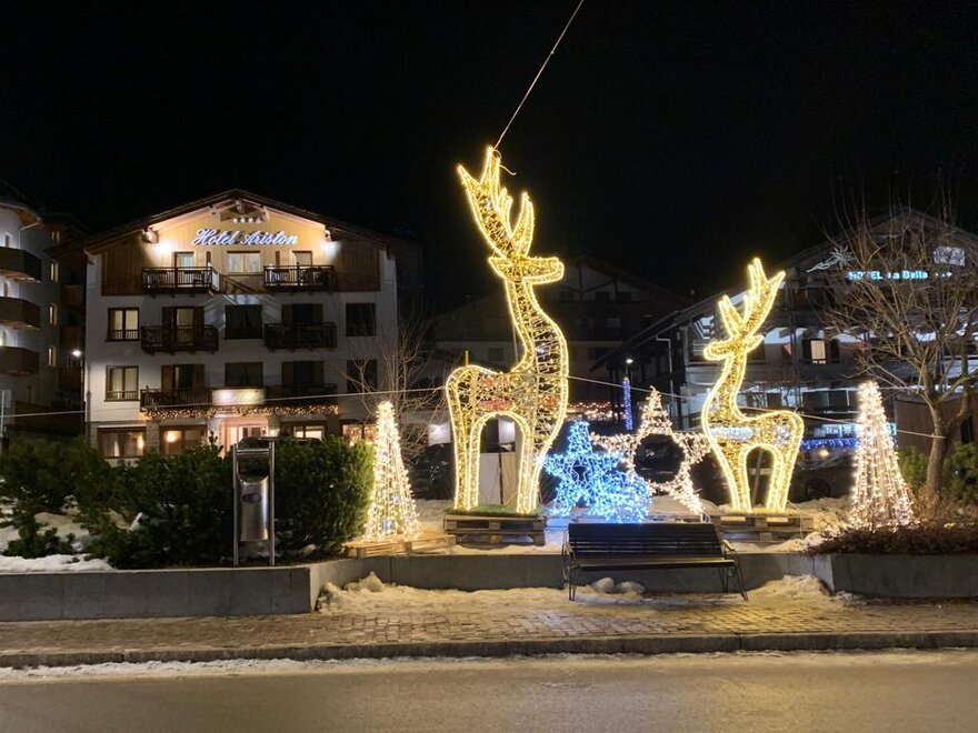 Arriva in auto: • Autostrada A4 MILANO-VENEZIA: uscita"Brescia Est" seguire poi le indicazioni per Lago d'Idro, Tione, Pinzolo, Madonna di Campiglio. • Autostrada A22 MODENA-BRENNERO: da sud: uscita"Trento Centro" seguire poi le indicazioni per Tione, Pinzolo, Madonna di Campiglio ( km 73) da nord: uscita "S. Michele all'Adige" seguire poi le indicazioni per Cles, Dimaro, Madonna di Campiglio ( km 71) • IN PAESE: Se arrivate dalla Val Rendena ( Tione, Pinzolo) all'entrata del paese imboccate la galleria in direzione "Campiglio Nord" ed all'uscita della stessa girate subito a destra e scendete verso il centro fino a Piazza Brenta Alta. Se arrivate dalla Val di Sole o San Michele all'Adige/Mezzacorona scendete verso il centro senza imboccare la galleria fino a Piazza Brenta Alta . Arrivo in treno: •In Autobus: Collegamenti giornalieri da Malé, Bolzano, Trento, Milano e Brescia. •In Treno: Consultare l'orario delle Ferrovie dello Stato per la stazione di Trento o per la stazione di Brescia. Si prosegue poi con l'autobus. Arrivo in aereo: • Dall' aeroporto Catullo di Verona Villafranca km 160 Dall' aeroporto di Milano Malpensa km 250 Da dicembre ad aprile, tutti i giorni è in funzione il servizio di taxi-transfer organizzato dall'Azienda per il Turismo di Madonna di Campiglio. Il servizio è prenotabile tramite la reception almeno 4 giorni prima della data richiesta.