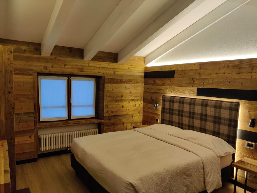 Le camere sono spaziose arredate e decorate in perfetto stile alpino. Sono dotate dei migliori comforts per rendere più piacevole la vostra permanenza. Una soffice trapunta in piuma per coricarvi, la Tv satellitare, la linea internet adsl gratuita, la sicurezza della cassaforte per i vostri valori e il notebook, un ampio bagno con doccia, morbidi teli in spugna e l'asciugacapelli.