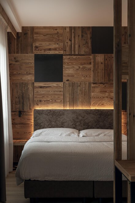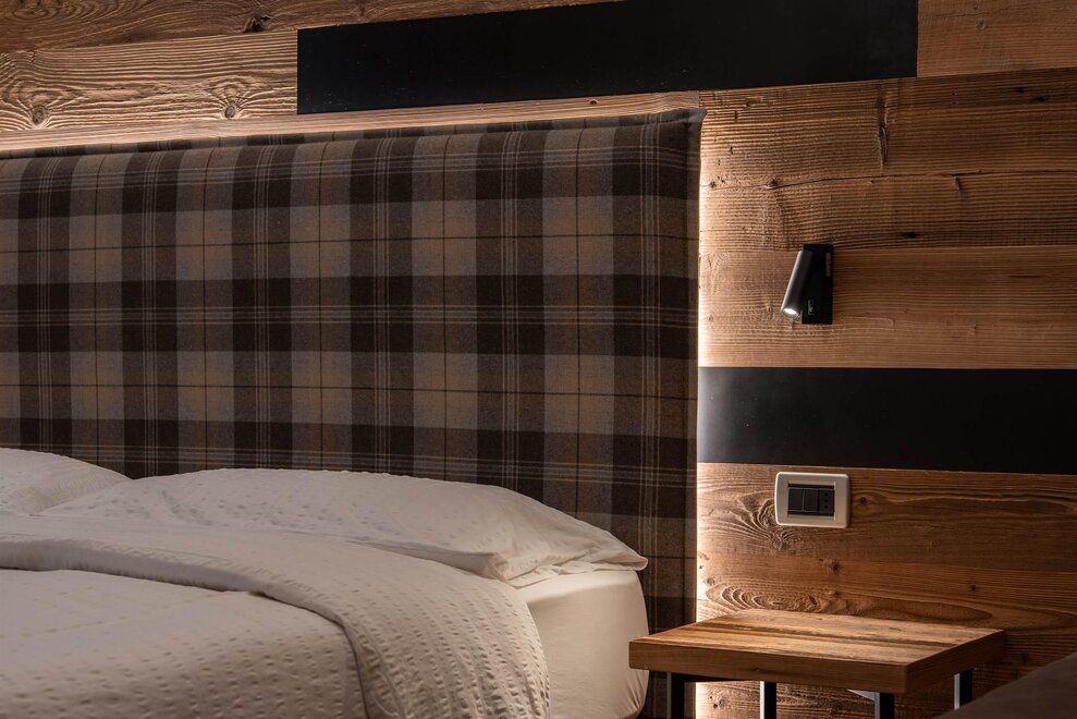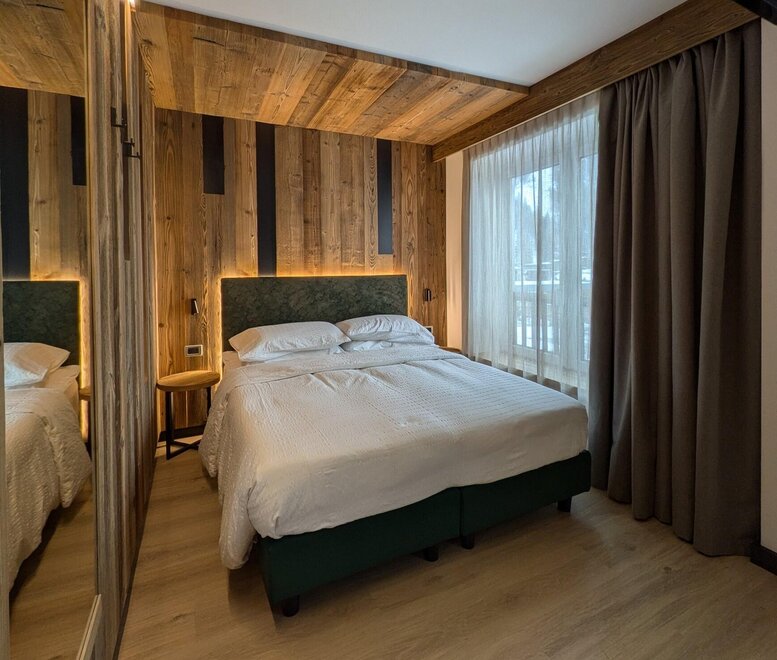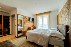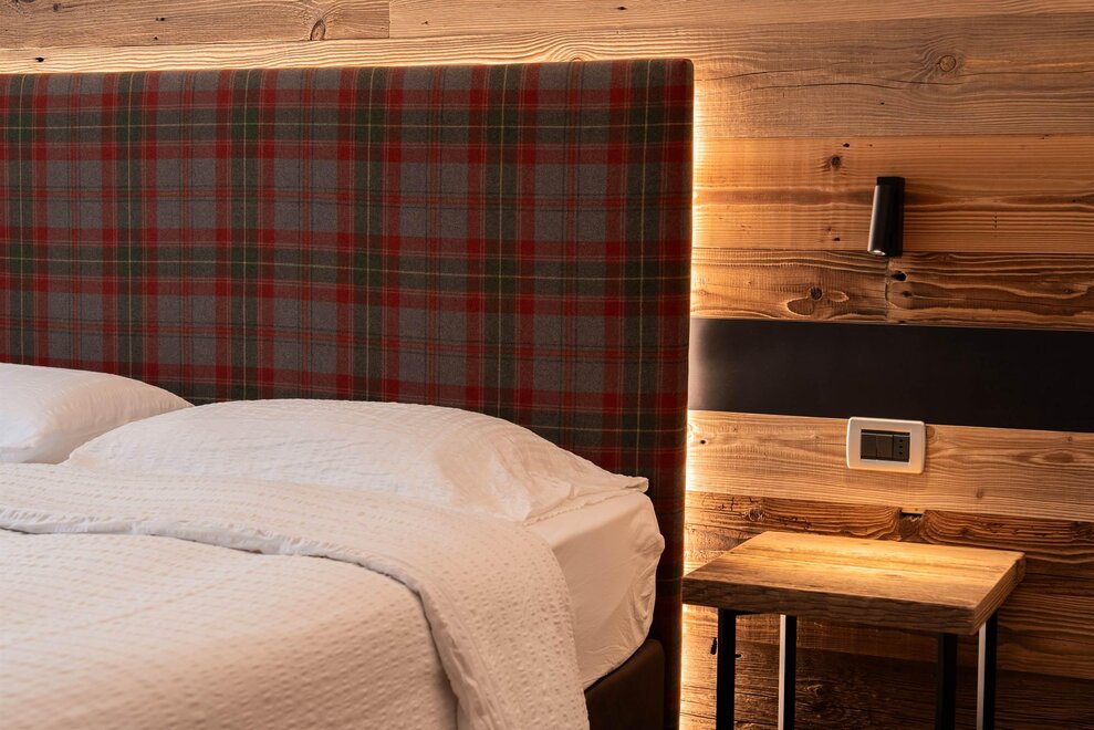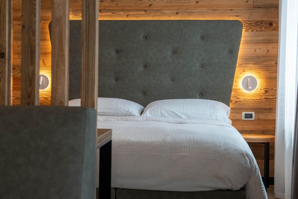 Luminosa e accogliente, la Panorama Superior coniuga il fascino dello stile alpino con dettagli moderni e ricercati. Il pavimento in legno naturale e gli arredi in legno recuperato da antiche baite creano un’atmosfera autentica e suggestiva. Il balcone si affaccia su Piazza Brenta Alta e sul monte Spinale, offrendo scorci spettacolari in ogni momento della giornata. Perfetta per chi desidera un soggiorno di charme nel cuore di Madonna di Campiglio.