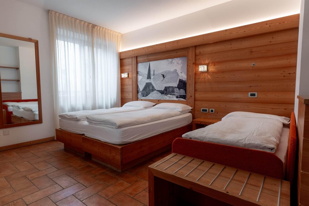 Accogliente e funzionale, la Camera 3Tre Comfort è pensata per chi cerca spazio e comodità. Arredata in stile alpino con pavimento in legno (ad eccezione della versione più ampia), accoglie due o tre ospiti in un ambiente rilassante che unisce calore e praticità. È dotata di bagno con doccia, TV, cassaforte e Wi-Fi gratuito. Su richiesta, può essere preparata con letti singoli.
