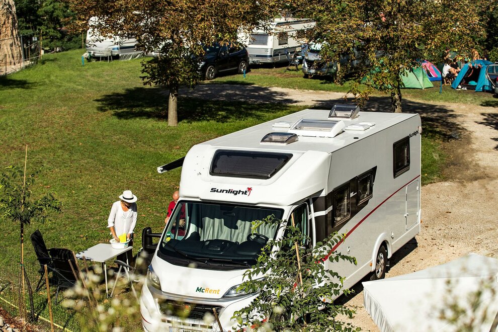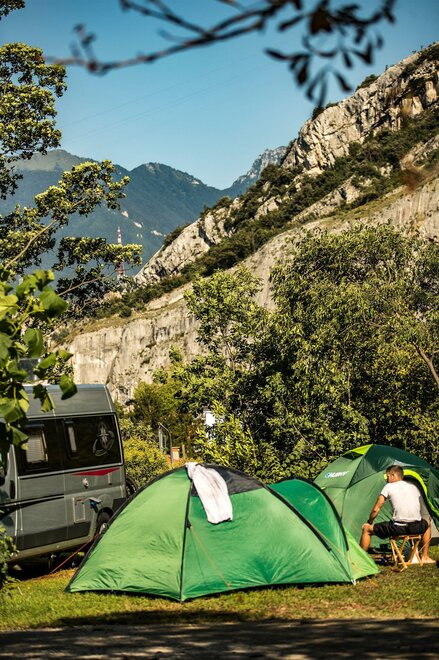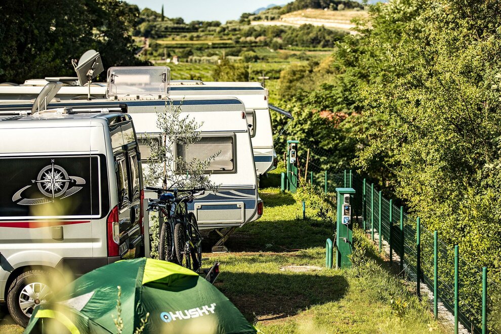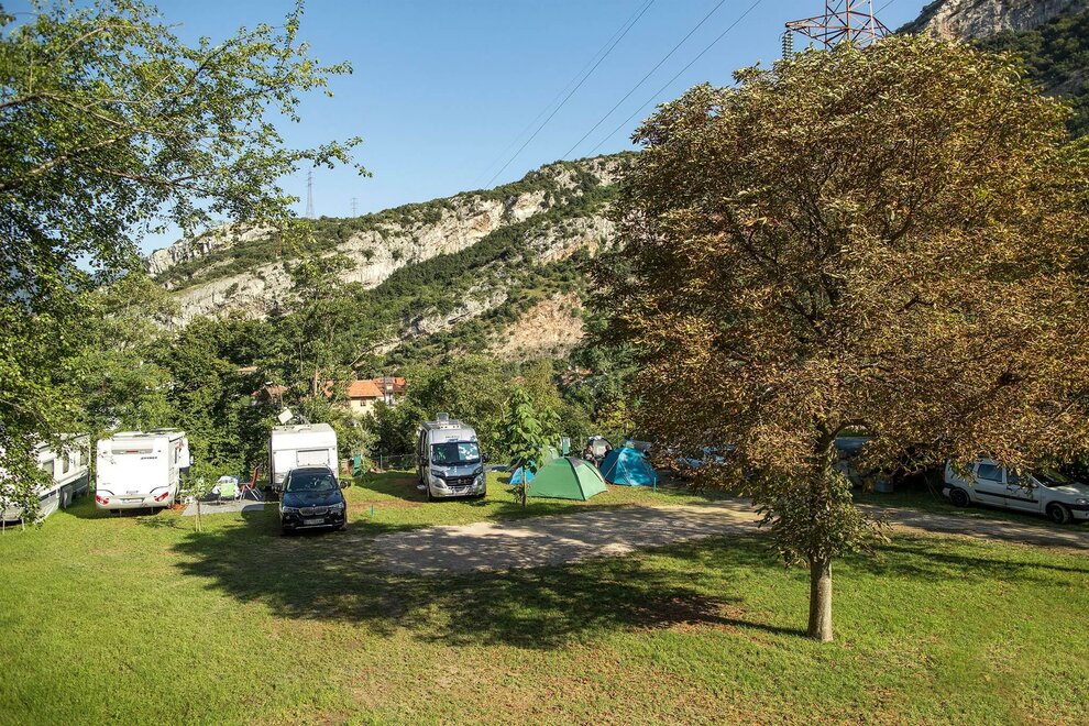 Sono disponibili piazzole per camper, roulette e tende dotate di acqua potabile, corrente elettrica e servizi igienici con doccia e acqua calda, lavandini per la pulizia delle stoviglie ed una funzionale lavanderia. Accessibile direttamente dalla SS240 strada di collegamento tra autostrada del Brennero A22 e il nord del lago di Garda.