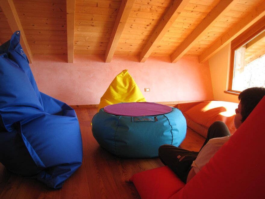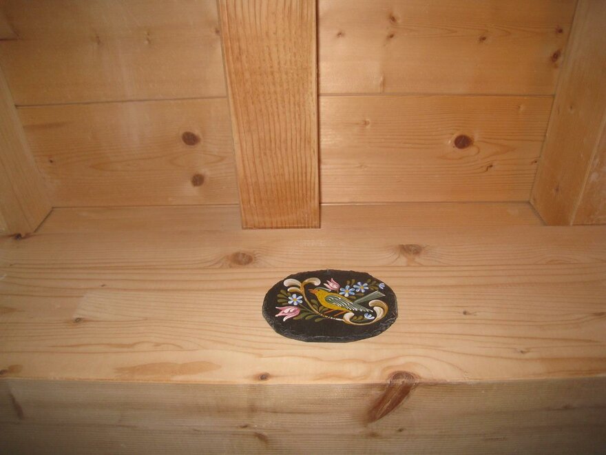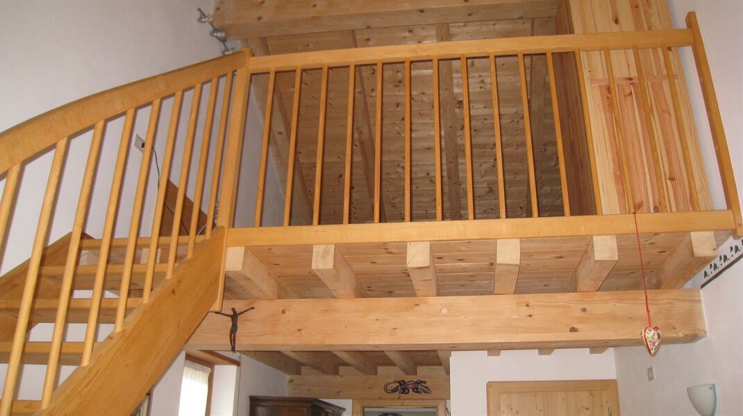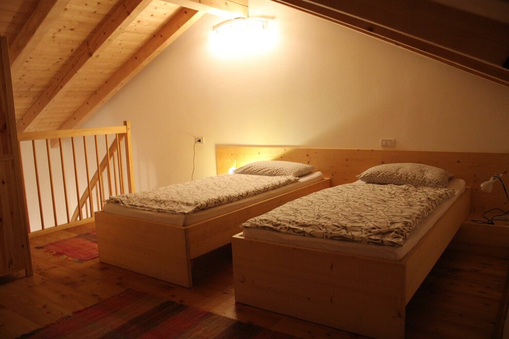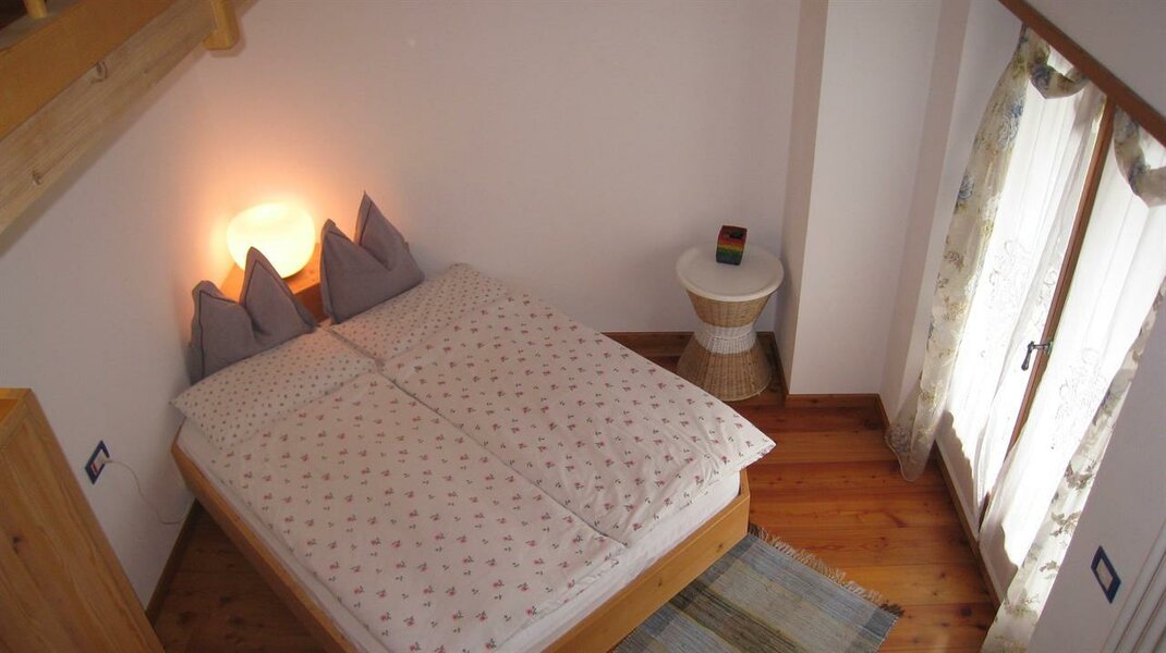 La camera genziana è romantica ed accogliente, in legno naturale non trattato. Il letto ad angolo offre la possibilità di guardare fuori dalla finestra, oltre il balcone. Alcuni nostri ospiti tolgono le tende! pensano che sia più bello lasciare vagare lo sguardo all'esterno. Sul soppalco c'è una comoda scrivania e un letto singolo supplementare, ideale "rifugio" per un bambino. Il bagno dispone di box doccia, bidet, wc, lavabo. Dettagli in blu e legno naturale negli arredi e nella struttura. I letti sono naturalmente dotati di biancheria, normalmente piumino estivo o invernale. Se però gli ospiti richiedono la soluzione più classica di lenzuola abbinate a coperte, questo è possibile. La biancheria viene cambiata ogni volta che si rende necessario ed almento ogni 3/4 giorni. Per il lavaggio usiamo solo detergenti ecologici completamente biodegradabili. Per uso occasionale, comodo se si hanno bambini, cucina con frigo, freezer e piano cottura a disposizione degli ospiti al piano terra.