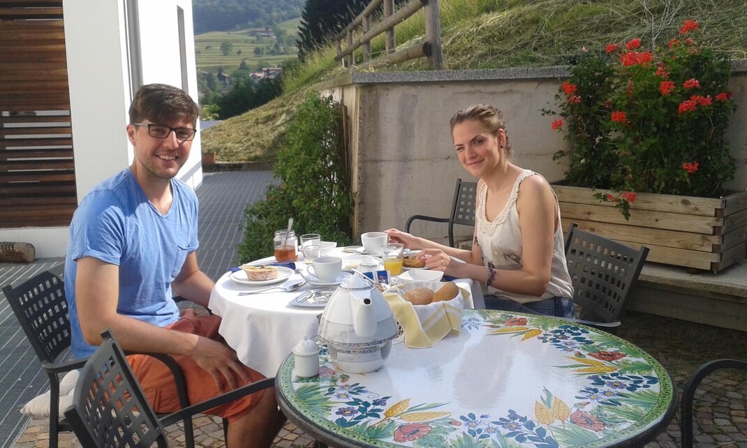 Se il tempo e le temperature lo consentono, la colazione si fa in terrazza con bella vista sulla valle e sulla chiesa di San Martino. Se vi sono esigenze particolari e ci informate in tempo, possiamo anche preparare dolci per chi è intollerante al glutine o prodotti vegan. GARANTIAMO per una vacanza sicura grande attenzione alla pulizia e sanificazione con ozono ad ogni cambio ospite.