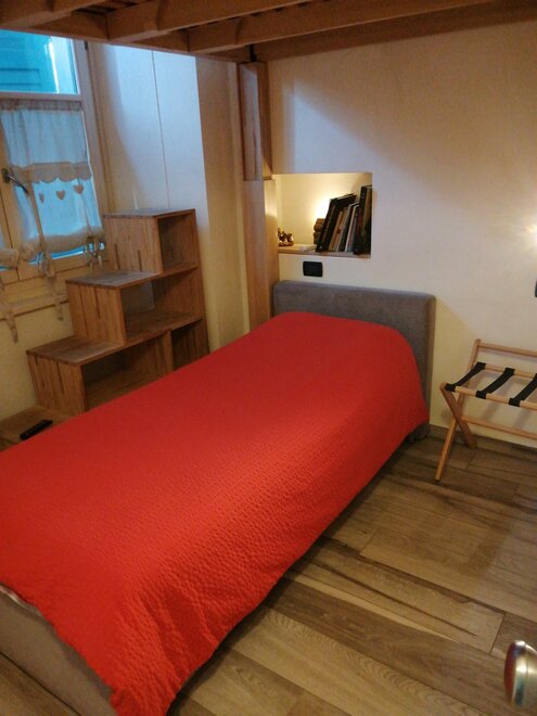 La stanza doppia è utilizzabile fino a tre persone con letto matrimoniale o due letti singoli di cui uno soppalcato.