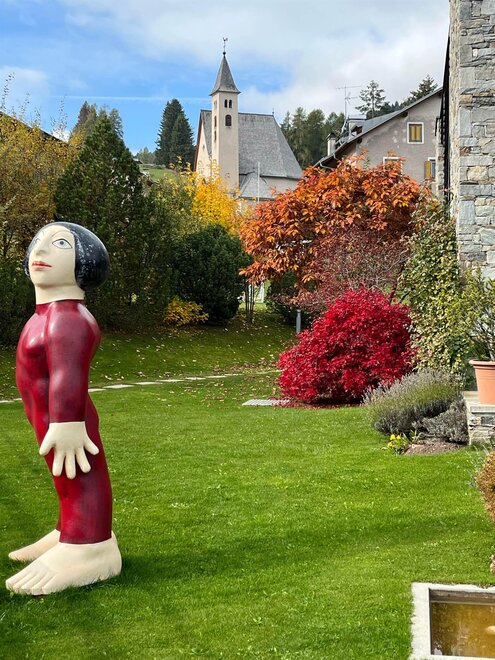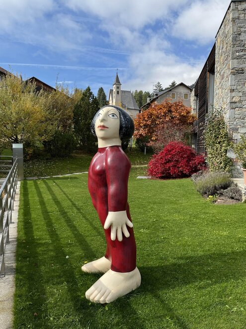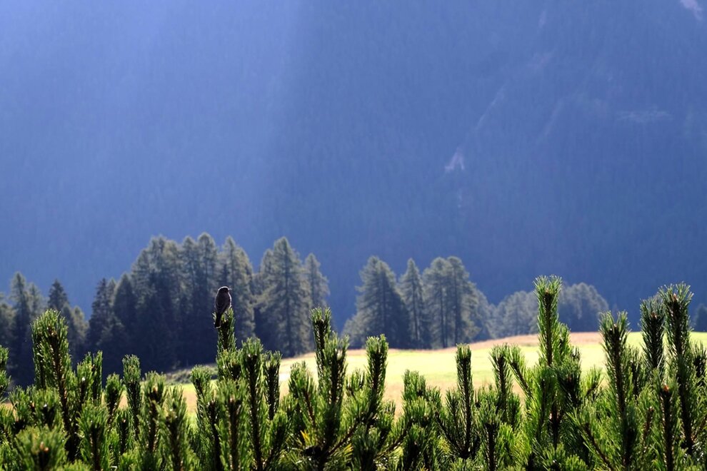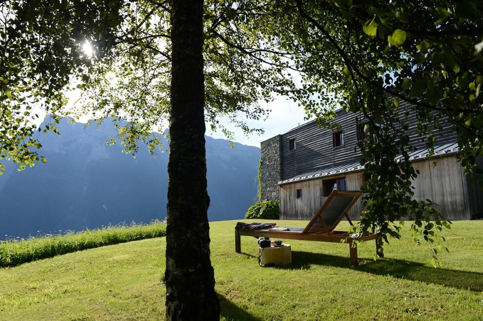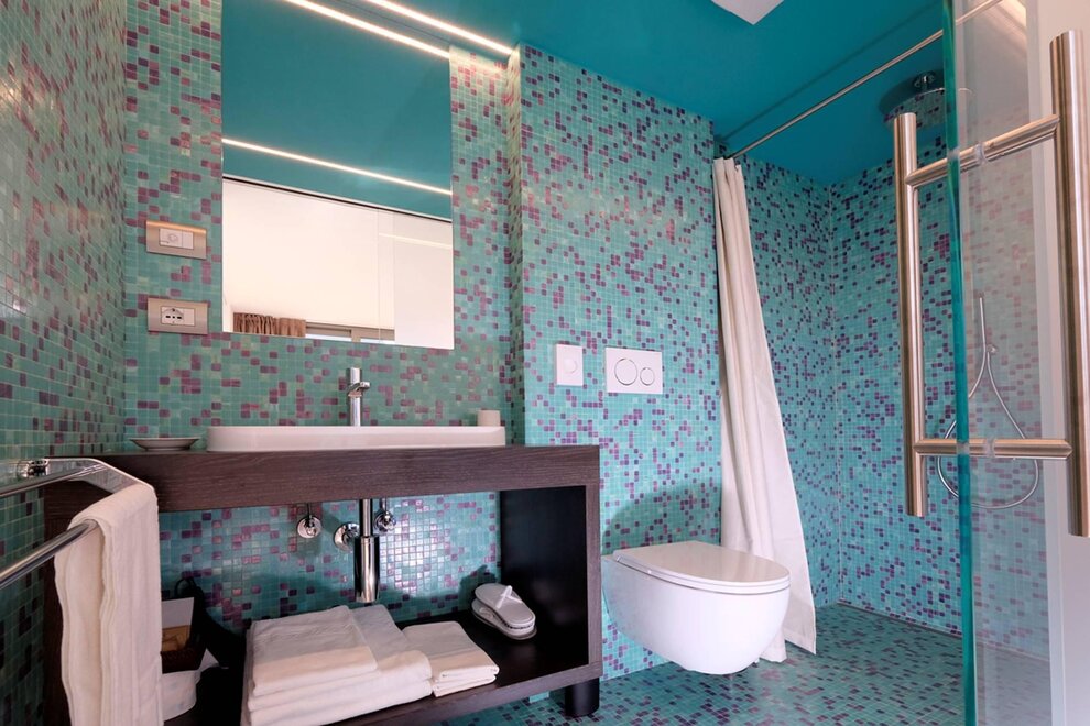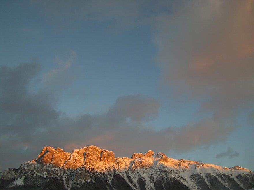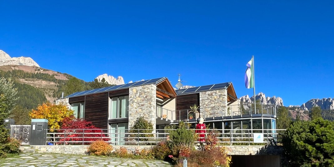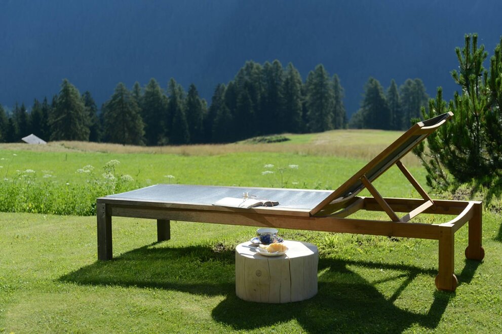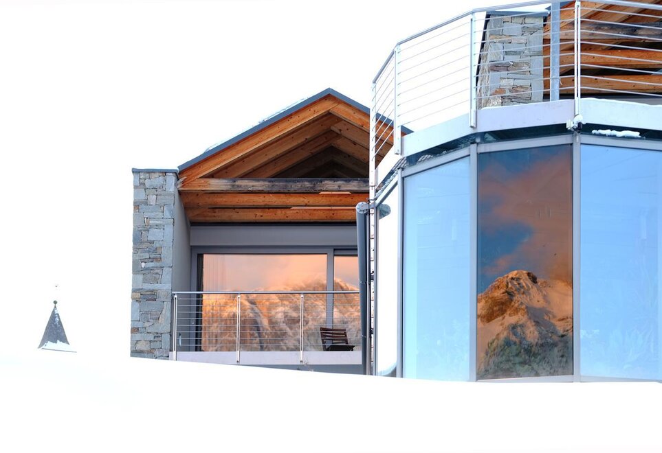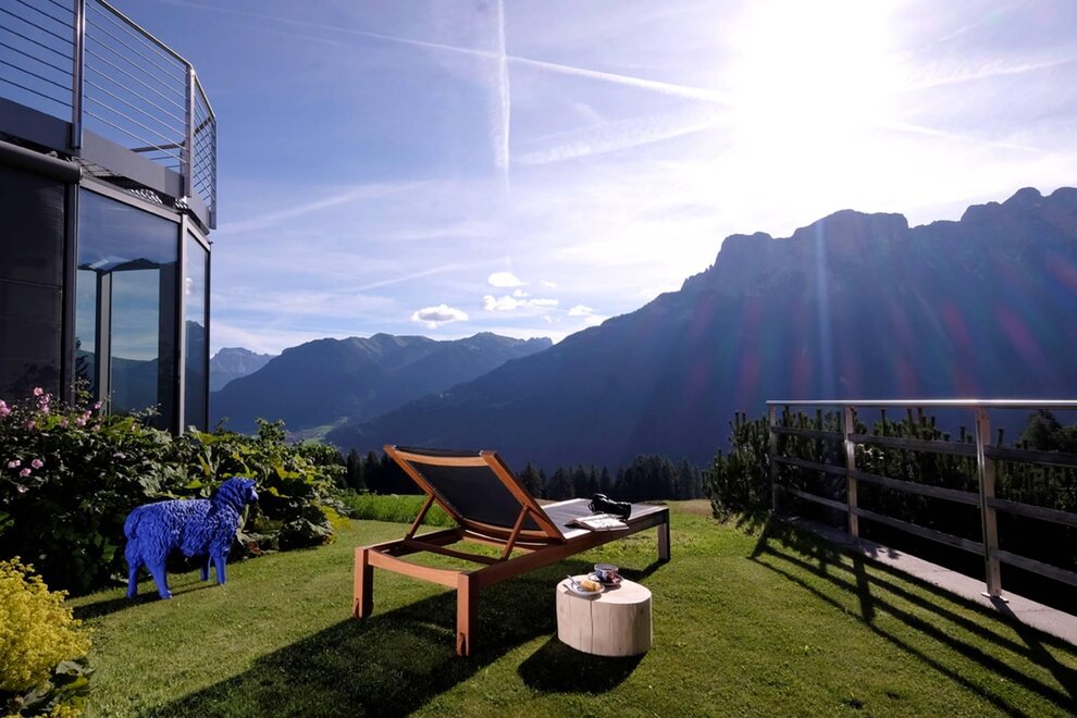 La camera è situata verso sud-est con ampia terrazza verso la valle, l’interno è arredato in modo elegante e ricercato, il letto è posizionato al centro della stanza rivolto verso la grande vetrata. Vanta una vista mozzafiato sul giardino, i prati e le montagne. Il pavimento è in legno di larice ed il rivestimento di una parete è in legno di cirmolo naturale. La camera è dotata anche di un divano che all’occorrenza può diventare un comodo letto, TV a parete, scrivania e cabina/armadio aperto in legno. Il bagno in mosaico ha una gamma di colori che va dal turchese al viola con lavandino, wc ed ampia doccia. La camera a richiesta può essere collegata con la camera Erika. Malva: “una pianta perenne di colore rosa violaceo con striature scure che cresce nei prati e spesso spontanea negli orti e giardini, dotata di virtù benefiche, emollienti e antiinfiammatorie contro la tosse. Il nome deriva dal termine latino “mollire” cioè capace di ammorbidire ...”