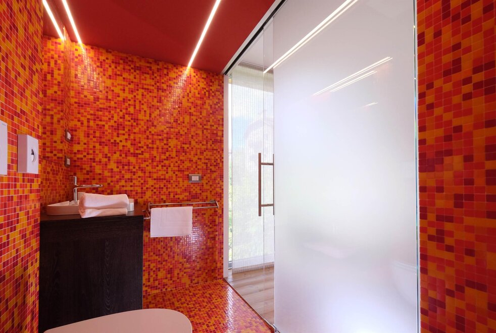 Spaziosa camera molto riservata, situata verso nord-est con ampia vetrata e terrazzo, regala una vista unica e spettacolare sui prati, i boschi, la valle e le montagne Dolomitiche. Una finestrella permette di godere uno splendido scorcio del Catinaccio. L’arredamento è raffinato e moderno con un grande letto matrimoniale ed un divano che può diventare un comodo letto a due piazze. Il pavimento è in legno di larice ed il rivestimento di una parete è in legno di cirmolo naturale. La camera è dotata di TV a parete, scrivania e cabina/armadio aperto in legno. Il bagno in mosaico ha una gamma di colori in tonalità verdi con lavandino, wc ed ampia doccia. Margherita: “un fiore candido e solare considerato un simbolo di purezza di corpo e di spirito, cresce spontaneamente in gruppo nei prati. E´ un fiore semplice che dona un sorriso, ai petali delle margherite sono affidate le speranze dei cuori degli innamorati … m`ama o non m`ama ? …”