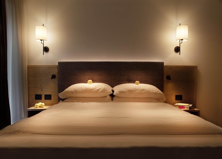 Alcune camere offrono anche il terrazzo o balcone con vista panoramica sulla montagna.