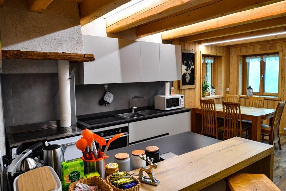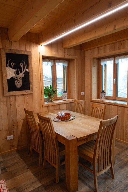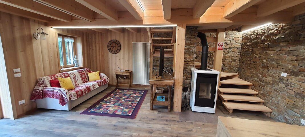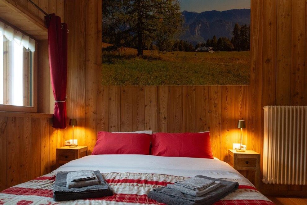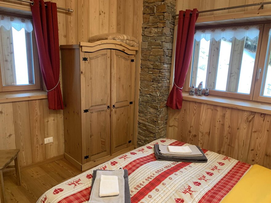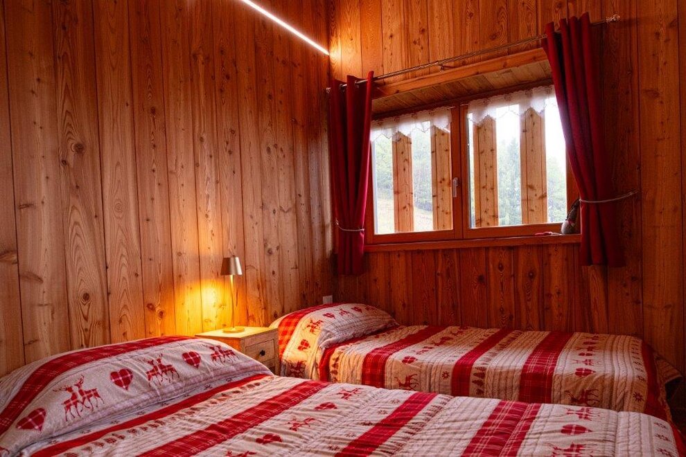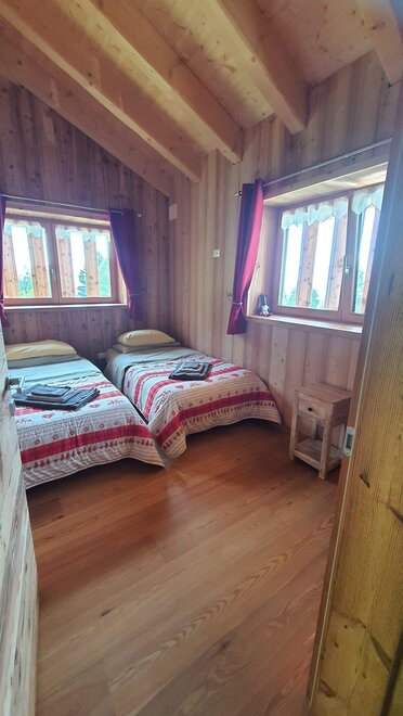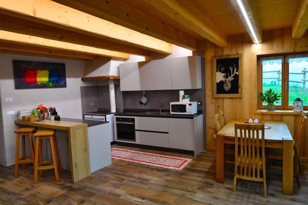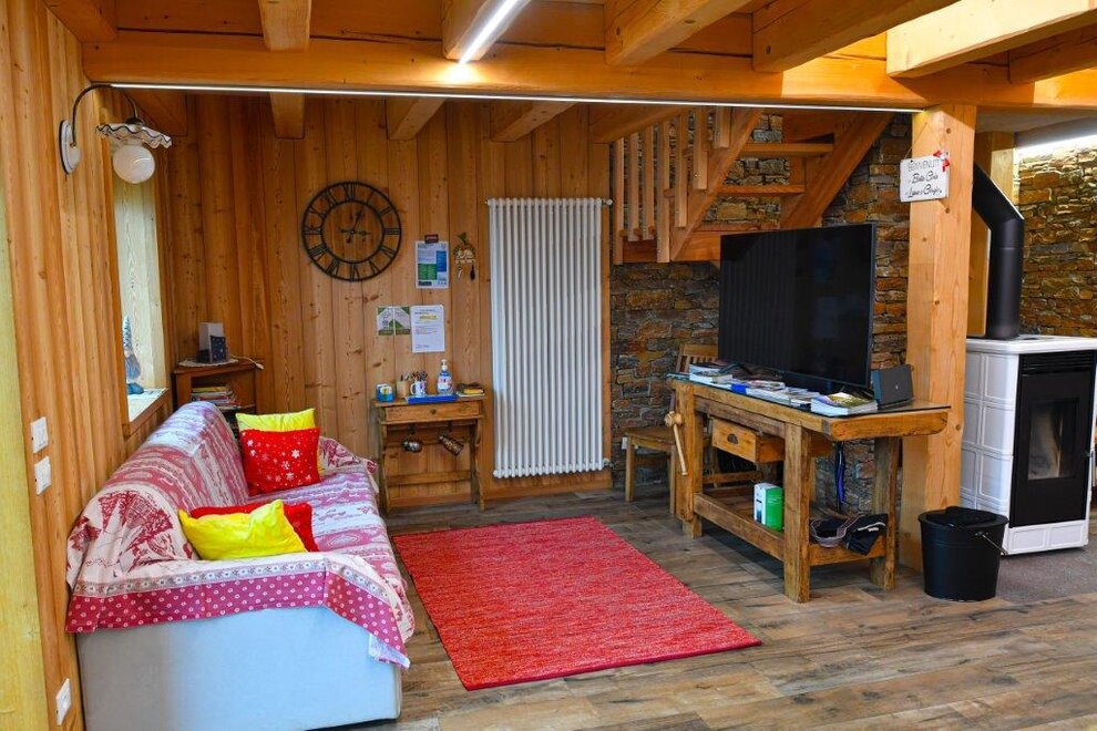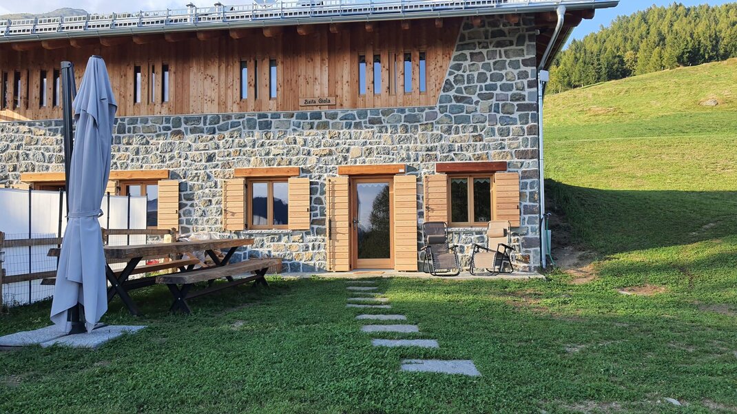 Baita Giola ospita fino a 5 persone con tre camere, due bagni, un’ampia cucina attrezzata e un comodo soggiorno.