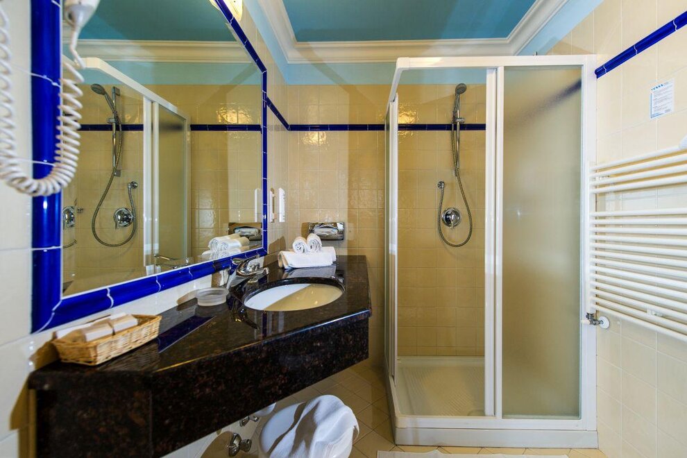 riscaldamento centralizzato, balcone, TV-Sat, asciugacapelli, servizio sveglia, telefono, TV, cassetta sicurezza, scrivania, possib. collegamento internet, accappatoio, minibar, radio, soggiorno, armadio