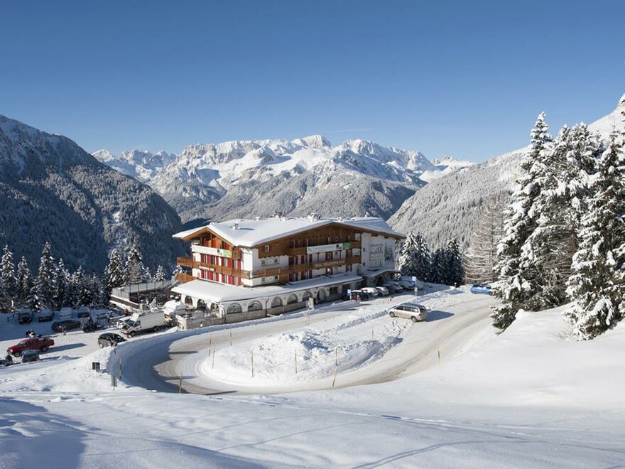 L'hotel si trova sulla Grande Strada delle Dolomiti, in direzione Passo Pordoi. Alla stazione intermedia, località Pecol, degli impianti di risalita del Belvedere.