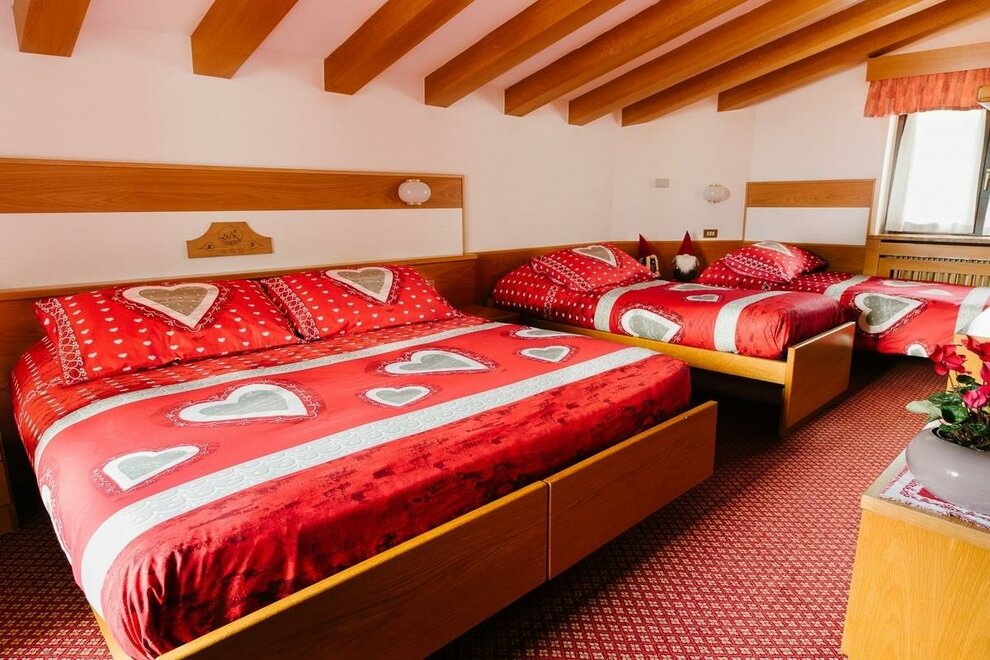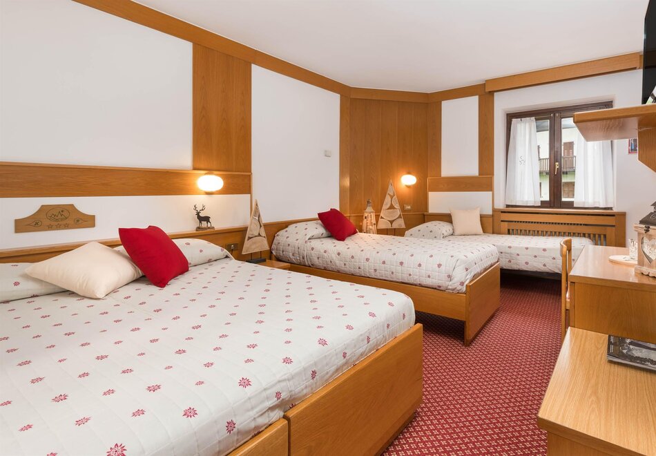 Camera matrimoniale con un letto aggiunto ideale per famiglie. Permette alla famiglia di convivere in tutta libertà, dando un'occhiata anche al prezzo; è la soluzione ideale per una coppia con due bimbi. Il bimbo dai 0 ai 4 anni (non compiuti) verrà accomodato nella culla a lato dei genitori (la dotazione della culla, delle lenzuola copertine e cuscino è a nostra cura), bambini dai 4 anni in letto singolo. Su richiesta possibilità di trattamento in pensione completa.
