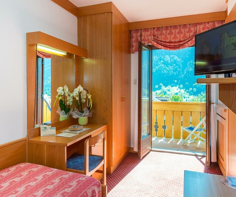 Accogliente e confortevole, ideale per chi viaggia o per chi ha deciso di dedicare del tempo a se stesso. Dotata di bagno privato con phon e linea cortesia, wifi, cassaforte di sicurezza, telefono e tv satellitare di sky. Il 90% delle nostre stanze singole è dotata di balcone panoramico.
