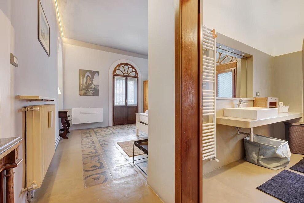 La proprietà offre ambienti ampi e accoglienti, caratterizzati da elementi storici e dettagli che raccontano il passato dell’edificio, creando un’atmosfera unica e suggestiva.