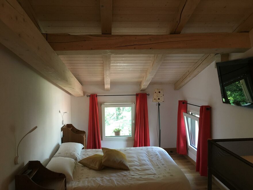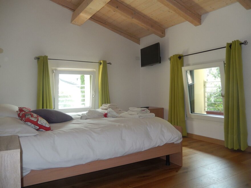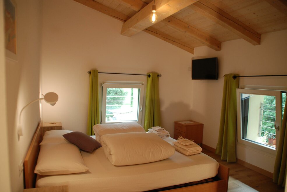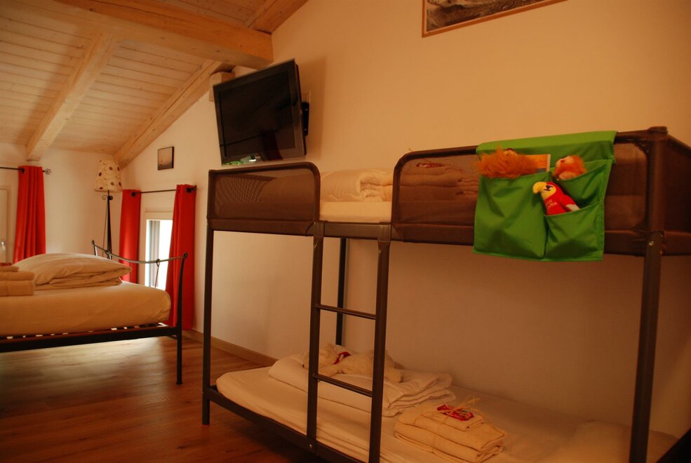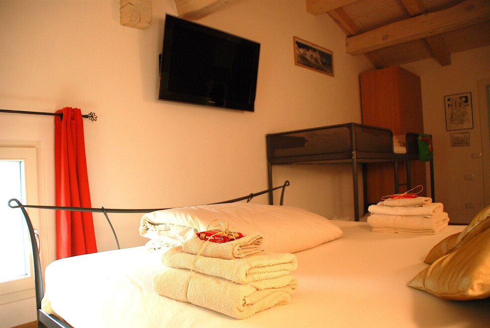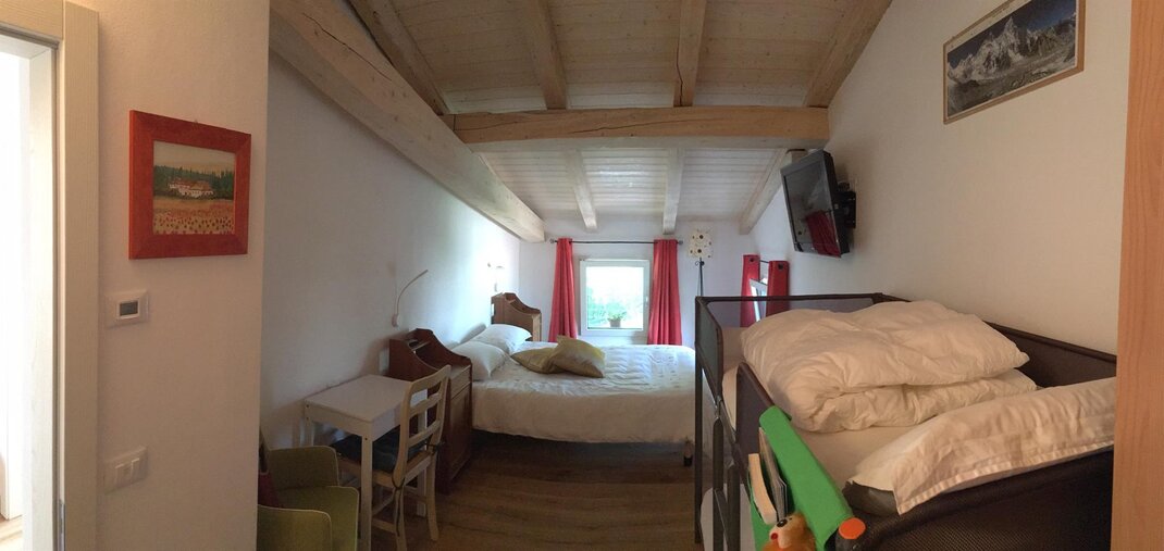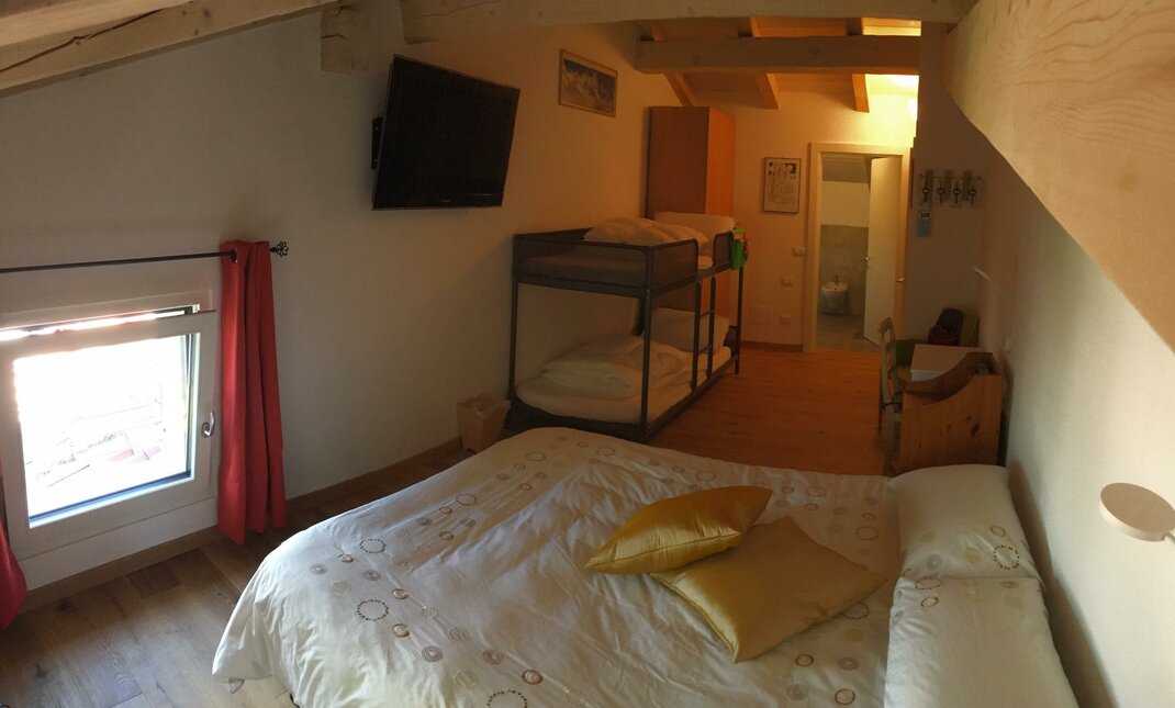 Camera doppia con letto matrimoniale e un letto a castello che puo' ospitare comodamente bambini/ragazzi, in caso di necessita' anche persone adulte. Bagno privato con doccia. La stanza al secondo piano in mansarda. Vi e' la possibilita' di utilizzare tutte le facilities, come la lavatrice e la cucina in comune. La colazione e' inclusa nel prezzo ed e' self service.