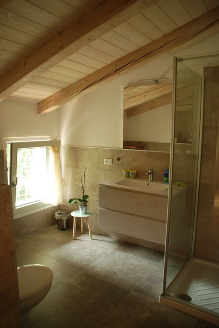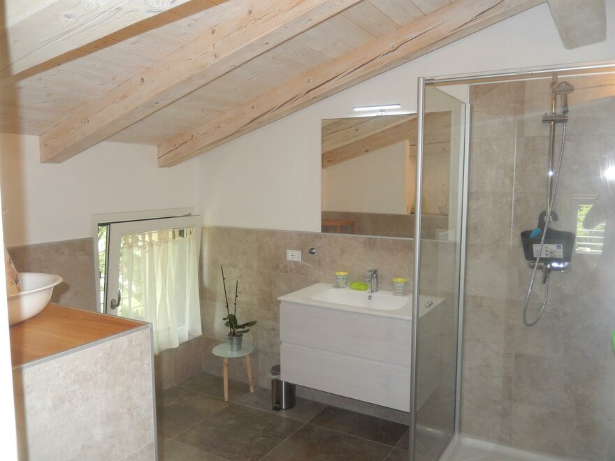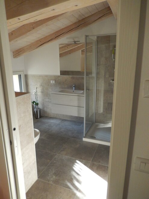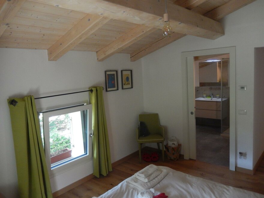 Camera doppia con letto matrimoniale, all'occorenza puo' essere trasformata con due letti singoli. Bagno privato con doccia. La stanza al secondo piano in mansarda. Vi e' la possibilita' di utilizzare tutte le facilities, come la lavatrice e la cucina in comune. La colazione e' inclusa nel prezzo ed e' self service.