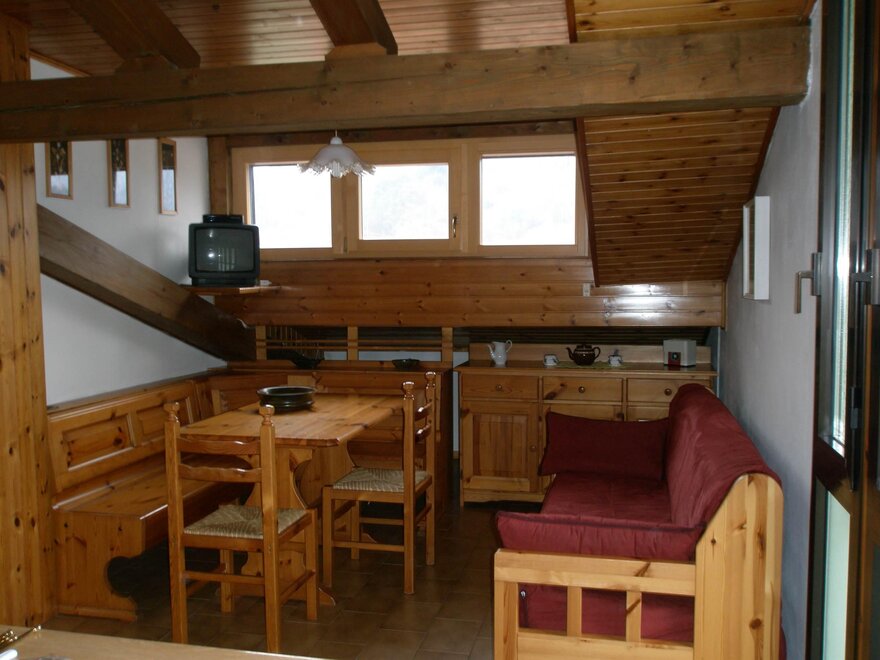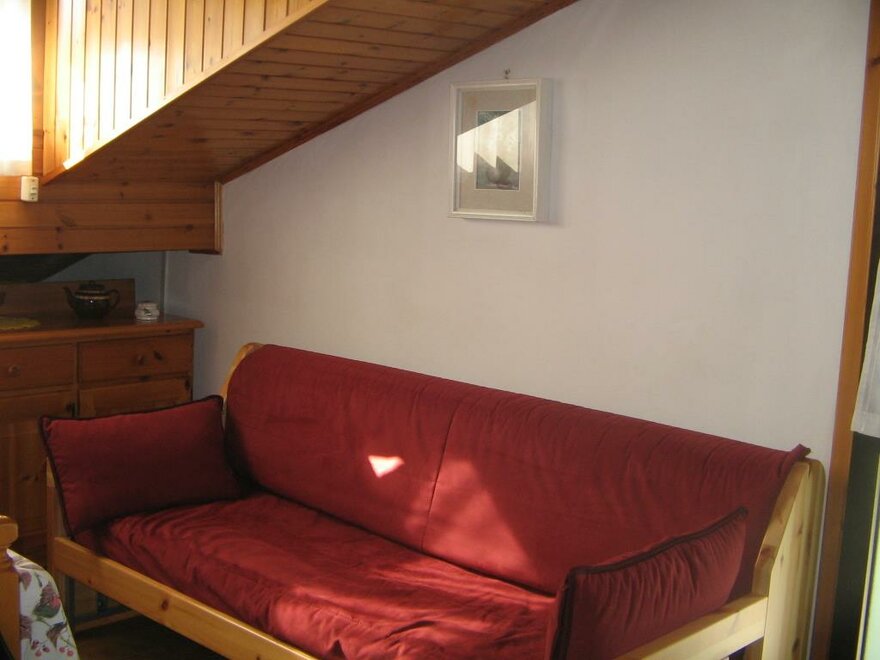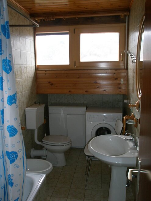 Appartamento per vacanze al primo piano di 50 mq composto da soggiorno con angolo cottura, corridoio, ripostiglio, doccia dotata di phon, riscaldamento autonomo, balcone, giardino e prato, cortile, posto macchina all’aperto riservato, lavatrice, aspirapolvere, asse e ferro da stiro, televisore, biancheria da cucina, da camera e da bagno (a richiesta), si accettano animali di piccola taglia.