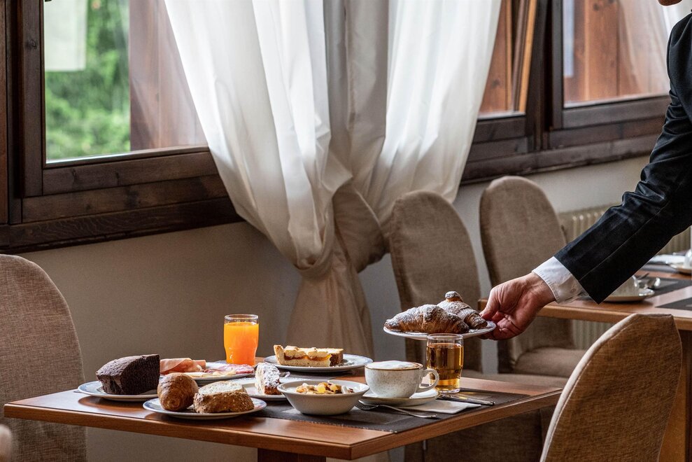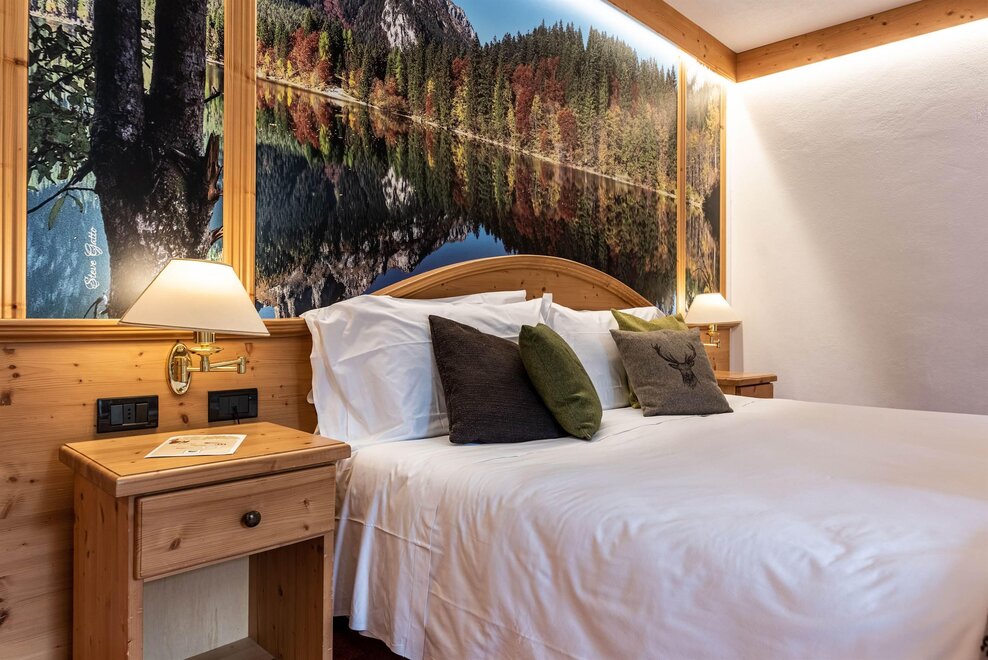 Servizi inclusi: - mezza pensione con 4 menù a scelta, piatti ecoristorazione Trentina , tradizionali, bio e vegetariani - accapatoio e ciabattine in camera per Lui e Lei - utilizzo area wellness con saune, palestra, idromassaggio panoramico , tisaneria e oasi relax - ricco programma OUTDOOR di Sport & Relax con escursioni accompagnate dalla nostra Guida di Territorio anche in notturna sotto le stelle - sky tv free calcio e film - Parco card con parcheggi, bus e trenini gratuiti per Tovel, Vallesinella e Val Genova; ingresso alle case del Parco multimediali, musei e castelli trentini; attività ed escursioni con le Guide del Parco - Posto auto in garage - Mini Club per bambini area riservata e assistita - connessione wi-fi in tutto l'hotel - ricco programma di attività escursionistiche, naturalistiche, culturali, botaniche, micologiche accompagnate da guide esperte in collaborazione con APT Val di Sole. Servizi a pagamento: • Escursione per ammirare le Dolomiti del Brenta con cena e pernotto in rifugio alpino e gioire davanti al tramonto e all’alba in alta montagna • Massaggi e trattamenti Grigliata nel bosco.