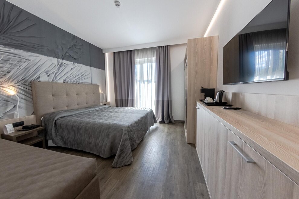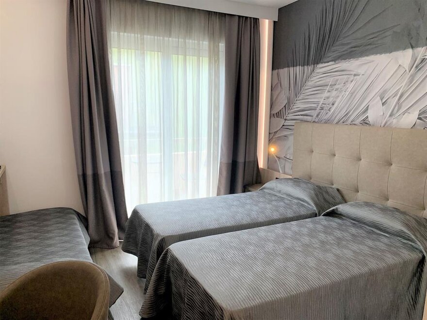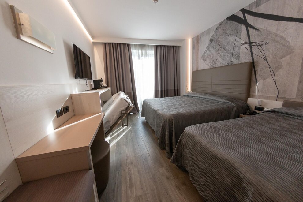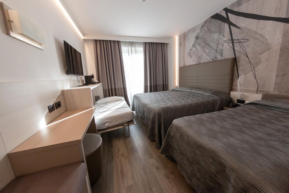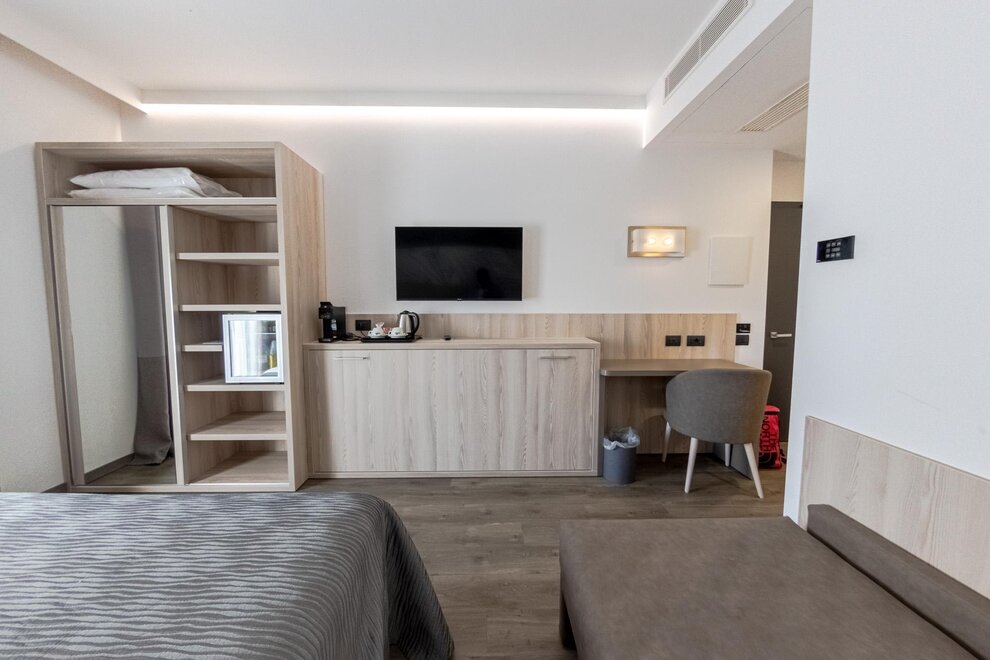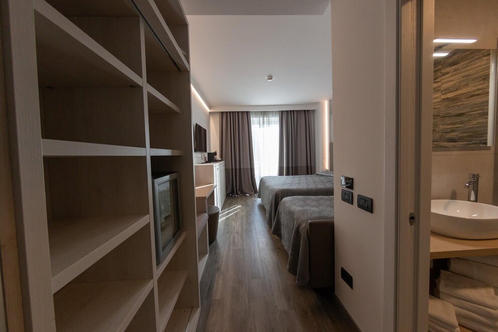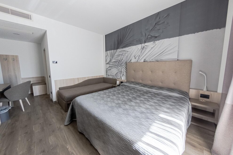 La nostra Tripla Superior è la scelta ideale per chi desidera spazio e comfort in un ambiente moderno e accogliente. Perfettamente adatta a famiglie o piccoli gruppi, questa camera offre aria condizionata, connessione Wi-Fi gratuita, un TV LCD satellitare per i vostri momenti di relax e un minibar sempre a disposizione per uno snack veloce.