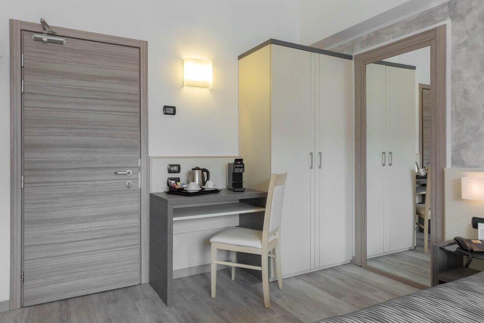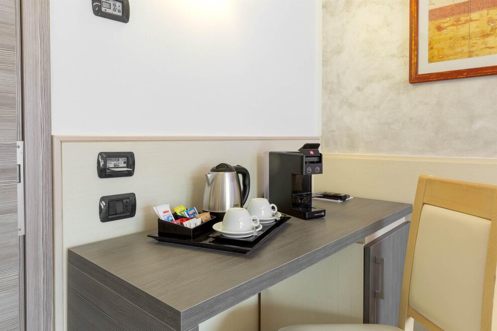 La camera è dotata di aria condizionata, connessione Wi-Fi gratuita, TV LCD satellitare e minibar, per rendere ogni momento del soggiorno piacevole e rilassante. Il bagno privato, con vasca o doccia e un set di cortesia gratuito, garantisce un comfort impeccabile. Per chi viaggia in gruppo o con la famiglia, sono disponibili camere comunicanti per unire praticità e vicinanza.