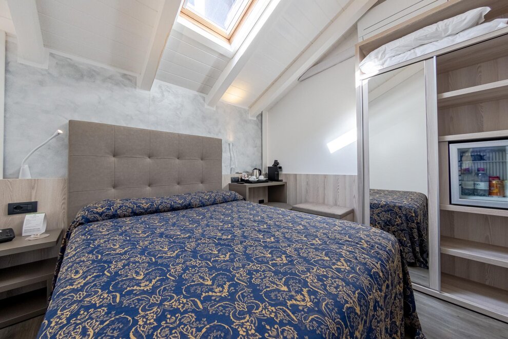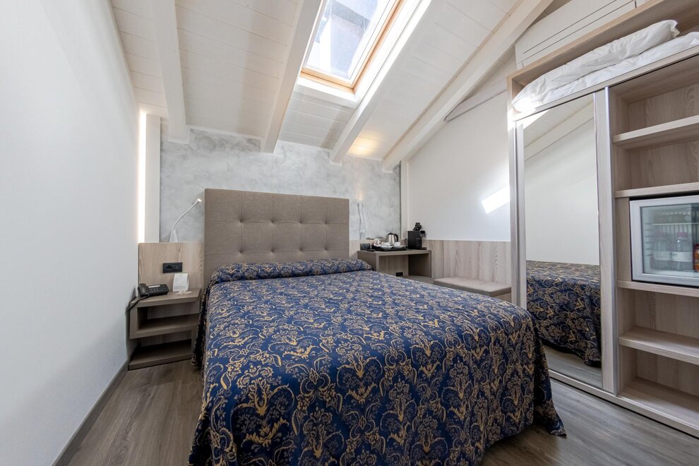 La nostra accogliente camera singola mansardata con lucernario è il rifugio perfetto per chi desidera una pausa all’insegna della comodità e della funzionalità. Climatizzata e dotata di Wi-Fi gratuito, offre una TV LCD satellitare per intrattenervi e un minibar sempre a disposizione per uno snack.