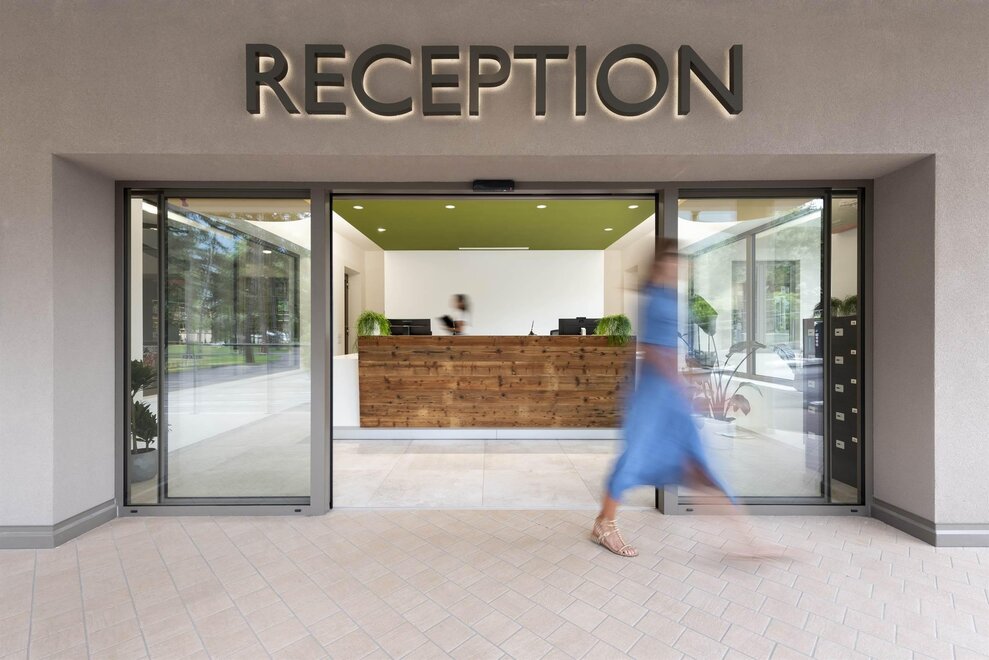 - Divisori o barriere fisiche tra il personale e gli ospiti nelle aree appropriate