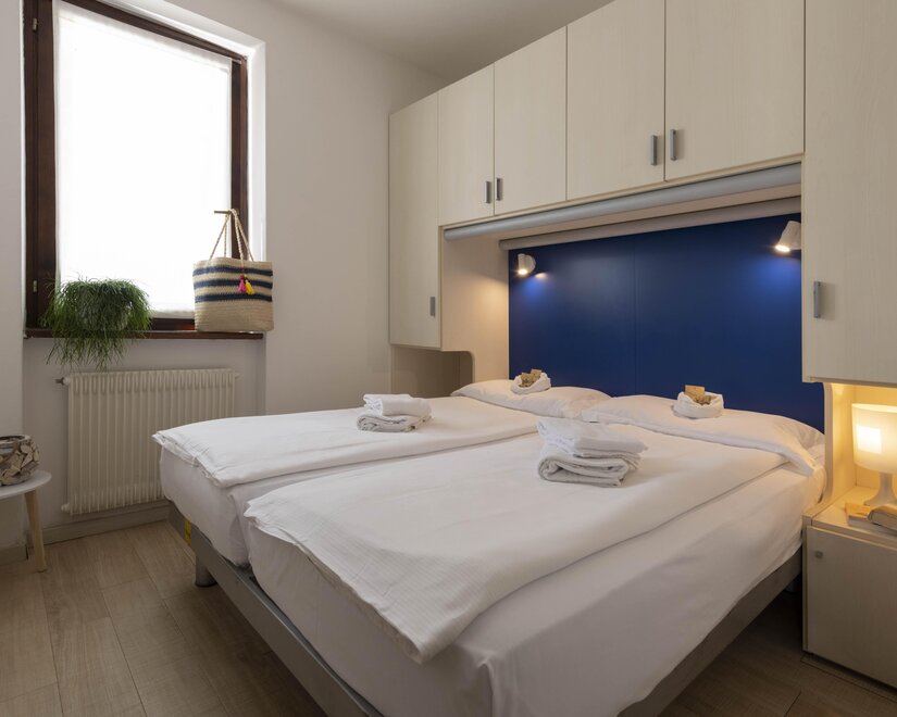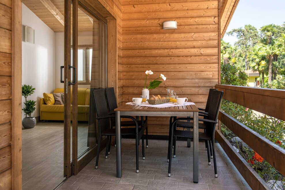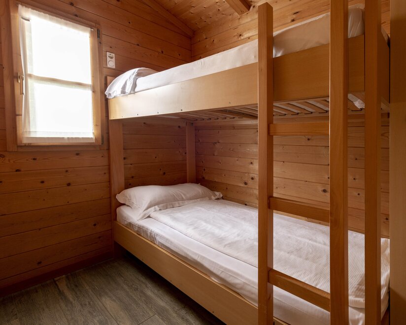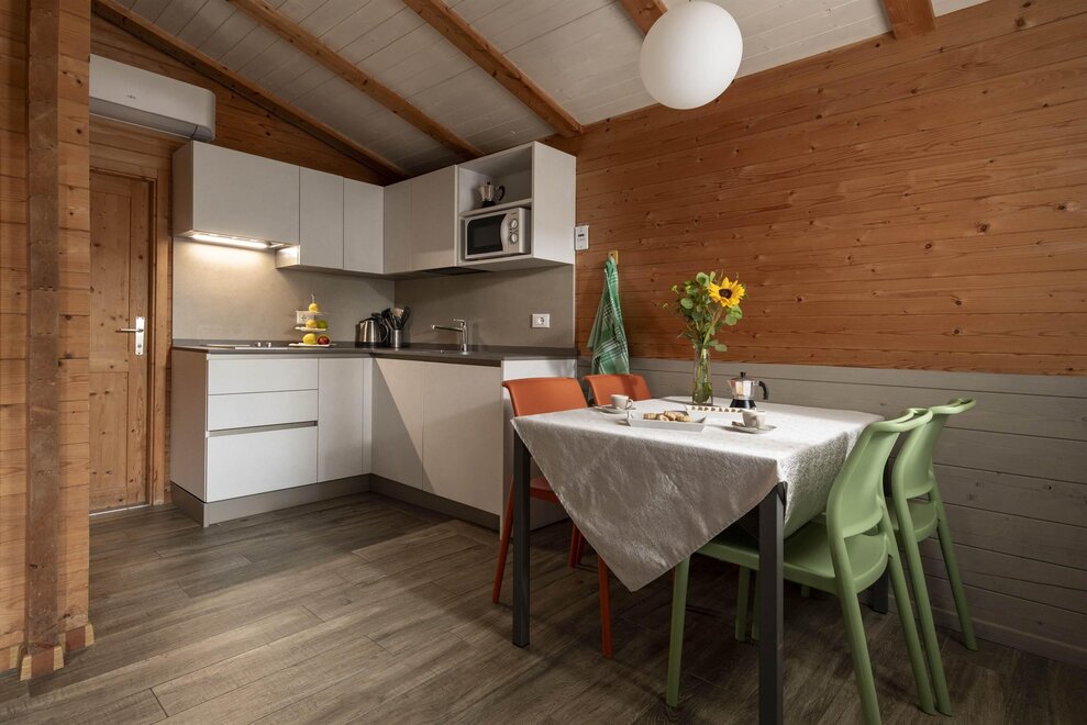 Oltre alle ampie piazzole con fondo erboso, il campeggio mette a disposizione confortevoli soluzioni abitative: mini appartamenti, bungalow e chalet.