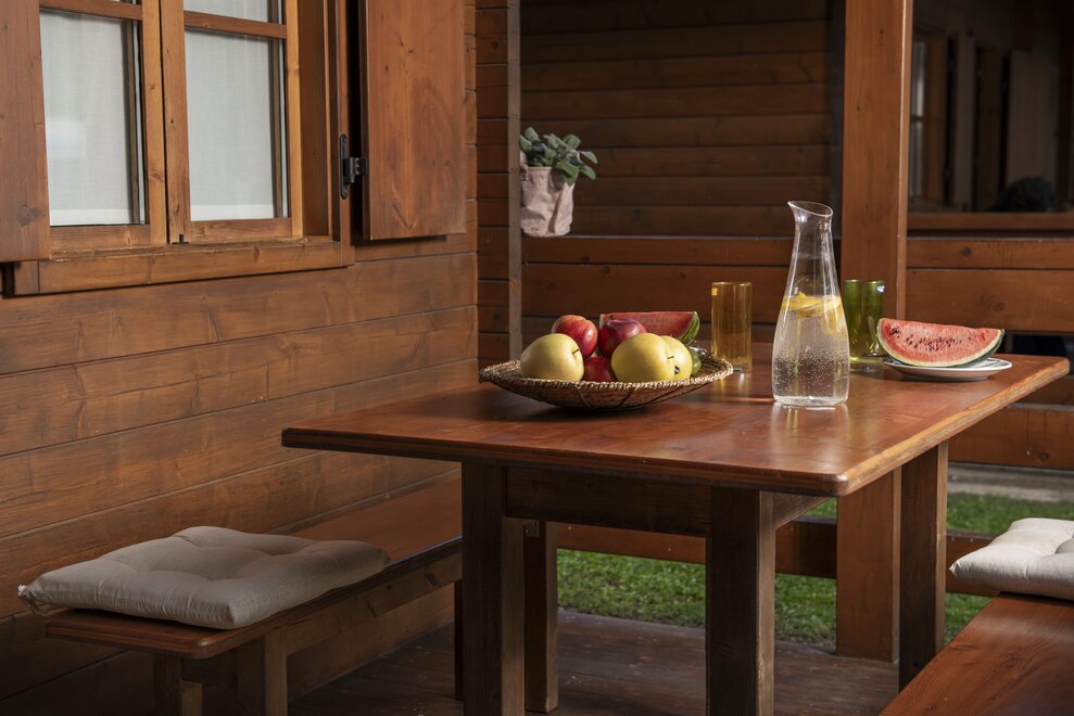 Non dovrai rinunciare alle comodità scegliendo i nostri splendidi Chalet “Colodri” in legno: trilocali spaziosi e confortevoli con due camere da letto e bagno privato che possono ospitare fino a sei persone. All’interno troverai un angolo cottura attrezzato (frigorifero, microonde, piano cottura, stoviglie e bollitore), biancheria da letto, asciugamani, coperte, riscaldamento, condizionatore, cassaforte e televisione con canali satellitari. Ciascun chalet saprà regalarti una vacanza magica, anche grazie all’ampia veranda coperta con tavolo e sedie. È presente un parcheggio privato accanto alla struttura. Gli animali sono ammessi.