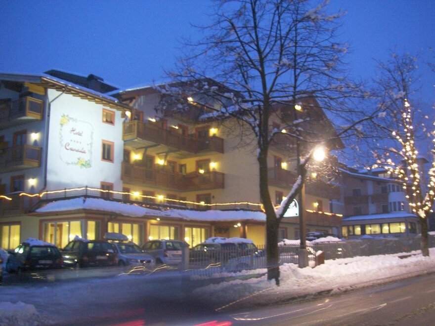 L´Hotel Canada è situato nel centro di Pinzolo, località che offre svariate possibilità per vacanze rilassanti sia invernali che estive. A 200 metri dagli impianti di risalita e a pochi minuti di macchina da Madonna di Campiglio. Dispone di 86 camere (singole/doppie/famigliari) e 12 suite/appartamenti con angolo cottura. Tutte le unità dispongono di servizi privati, telefono diretto con l´esterno, cassaforte, phon, minibar, TV con sky e canali satellitari e balcone. L´Albergo dispone di 2 ristoranti, sala colazione, bar, taverna, sala TV con satellite, 2 ascensori terrazza solarium, giardino, garage coperto e parcheggio privato, piscina con idromassaggio e zona benessere con sauna finlandese, bagno turco, doccia attrazione e kneipp, palestra technogym e deposito sci con scalda scarponi.