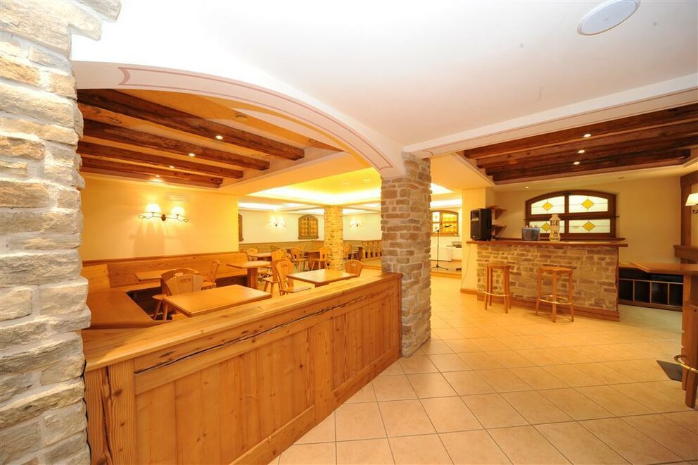 Accogliente stanza in rovere stile alpino da 12 a 18 mq e dotata di tutti i comfort: TV LCD con satellite, cassaforte, phon e minibar oltre a collegamento internet e apertura magnetica con scheda, servizi privati con doccia, WC, balcone panoramico, attrezzato con tavolino e sedia.
