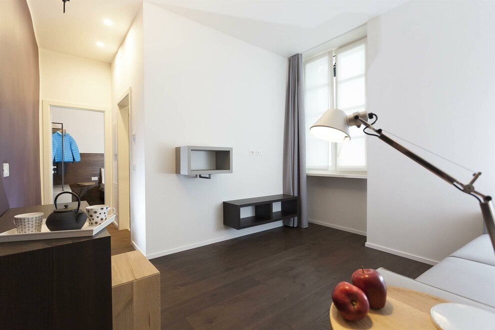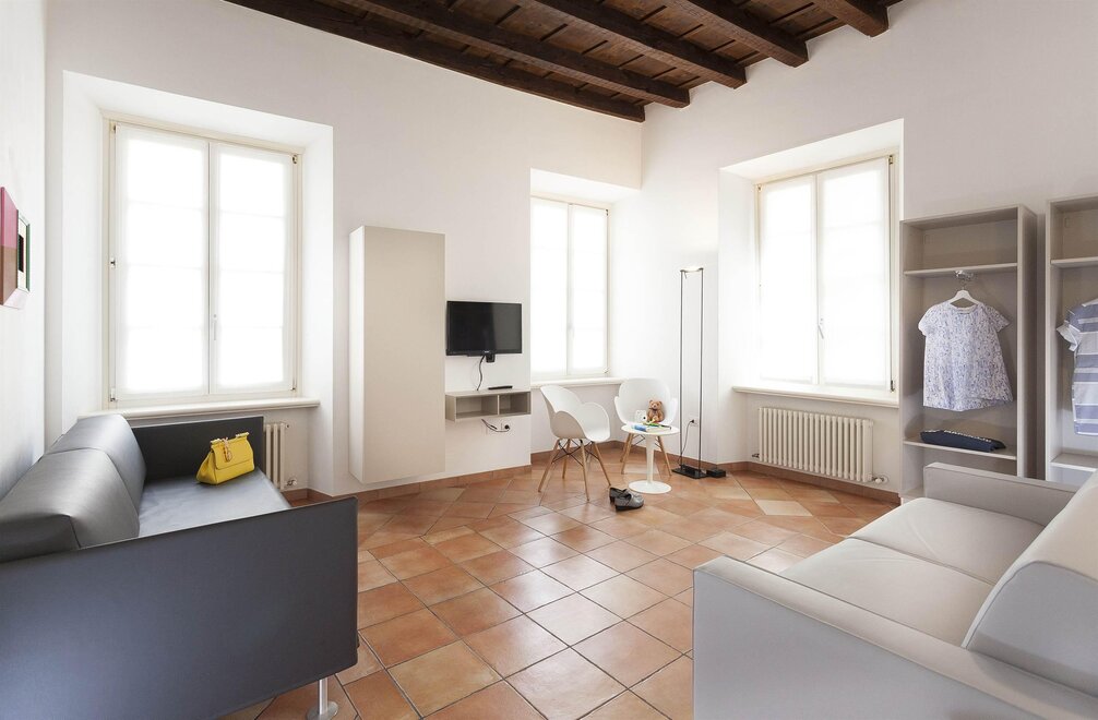 Piacevoli camere da 30 m² ideali per famiglie o un piccolo gruppo di amici, all’interno dell’antico palazzo e con vista sul centro storico….camera con un letto matrimoniale e soggiorno con divano letto, massimo 4 posti letto, bagno con doccia, pavimento in rovere scuro, aria condizionata indipendente, cassaforte, mini frigo, tv-sat lcd 32’, bollitore con assortimento di the-tisane, asciugacapelli, set di cortesia, accesso Internet ad alta velocità e Wi-Fi gratuiti, camera non-fumatori (su richiesta letti separati)