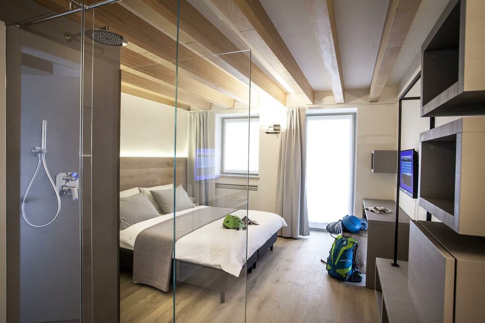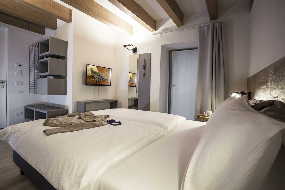 Accoglienti camere da 19-22 m²…. camera doppia, bagno con doccia, balcone, pavimento in rovere chiaro e travi a vista, aria condizionata indipendente, cassaforte, mini frigo, tv-sat lcd 32', bollitore con assortimento di the-tisane, asciugacapelli, set di cortesia, accesso Internet ad alta velocità e Wi-Fi gratuiti, camera non-fumatori (su richiesta letti separati o uso singolo)