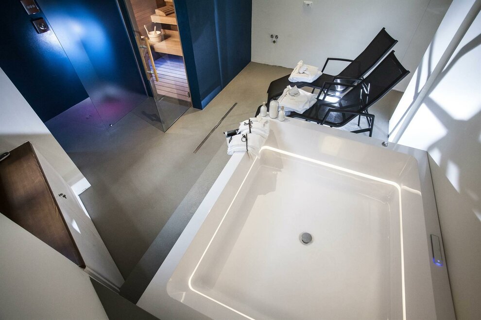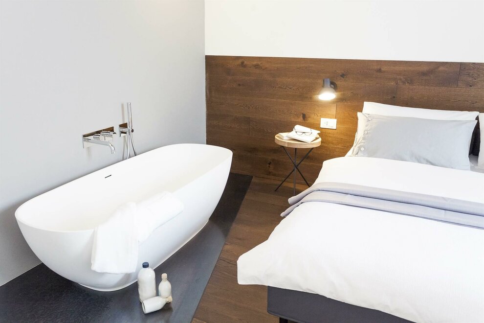 Romantiche suite da 23-26 m² all’interno dello storico palazzo con vista sulla corte interna…camera doppia, bagno con doccia, pavimento in rovere scuro e soffitto a cassettoni, romantica vasca da bagno al centro della camera, aria condizionata indipendente, cassaforte, mini frigo, tv-sat lcd 43', bollitore con assortimento di the-tisane, asciugacapelli, set di cortesia, accesso Internet ad alta velocità e Wi-Fi gratuiti, camera non-fumatori