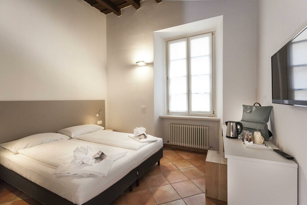 Eleganti camere da 29 m² all’interno dello storico palazzo con vista sulla corte interna…. camera con letto matrimoniale e zona lettura, bagno con doccia, pavimento in rovere scuro, soffitto a cassettoni, aria condizionata indipendente, cassaforte, mini frigo, tv-sat lcd 32', bollitore con assortimento di the-tisane, asciugacapelli, set di cortesia, accesso Internet ad alta velocità e Wi-Fi gratuiti, camera non-fumatori (su richiesta letti separati)