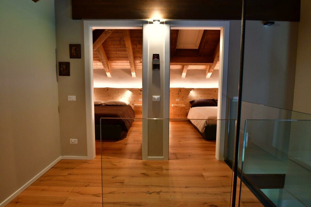 Le camere sono dislocate nel sottotetto - la casa ha subito un intervento massiccio di restaurazione conservativa e il tetto è isolato e coibentato -, dispongono di letto matrimoniale, sono intime e accoglienti, con finestra Velux elettrica.